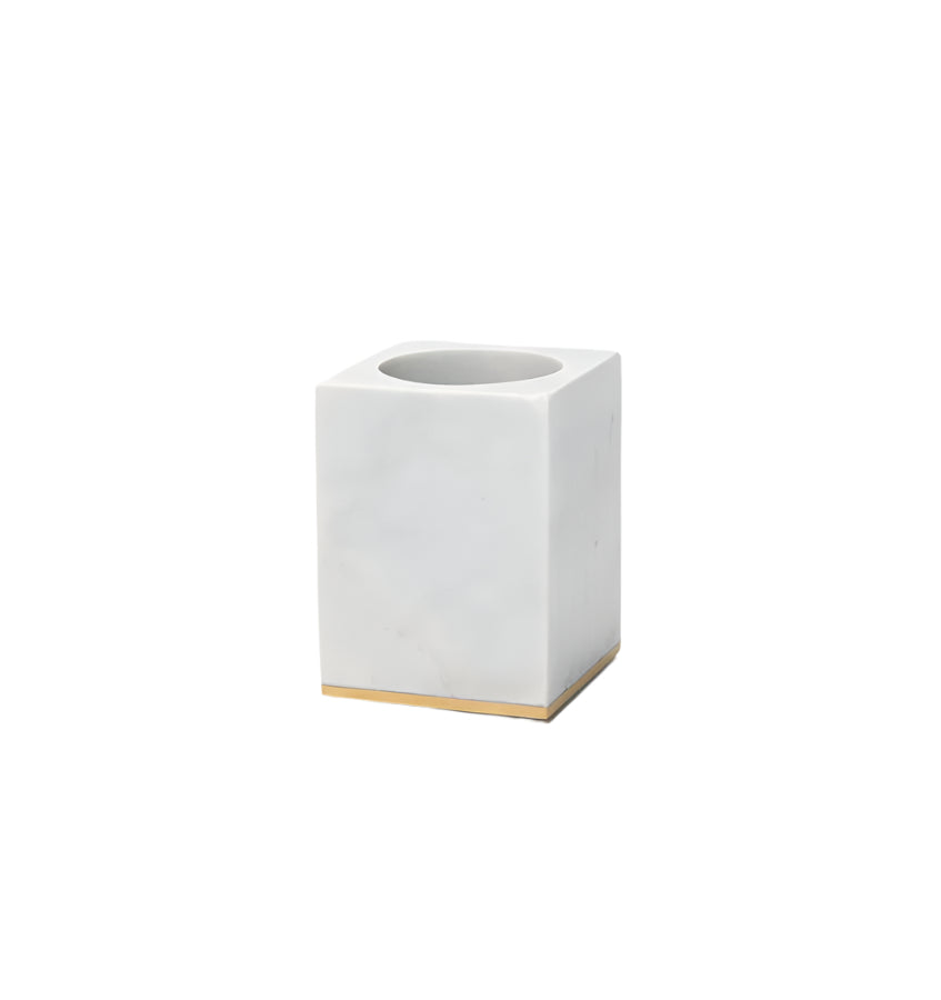 Renowned for their signature Italian craftsmanship, Sferra linens are famous for their quality, and lauded for their elegance, the world over. The Pietra Marble Toothbrush Holder exemplifies understated luxury, crafted from natural marble and finished with golden brass detailing. Designed with both beauty and practicality in mind, it brings refined organization to the daily ritual.