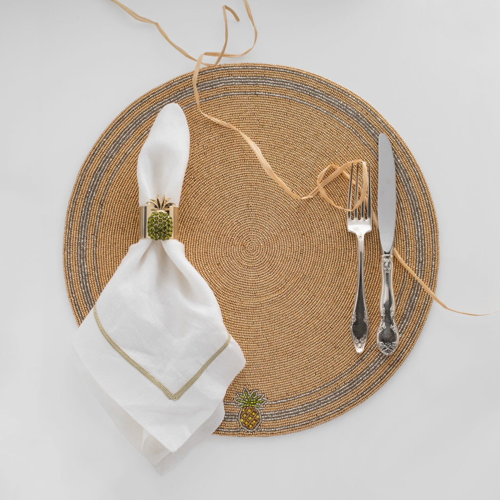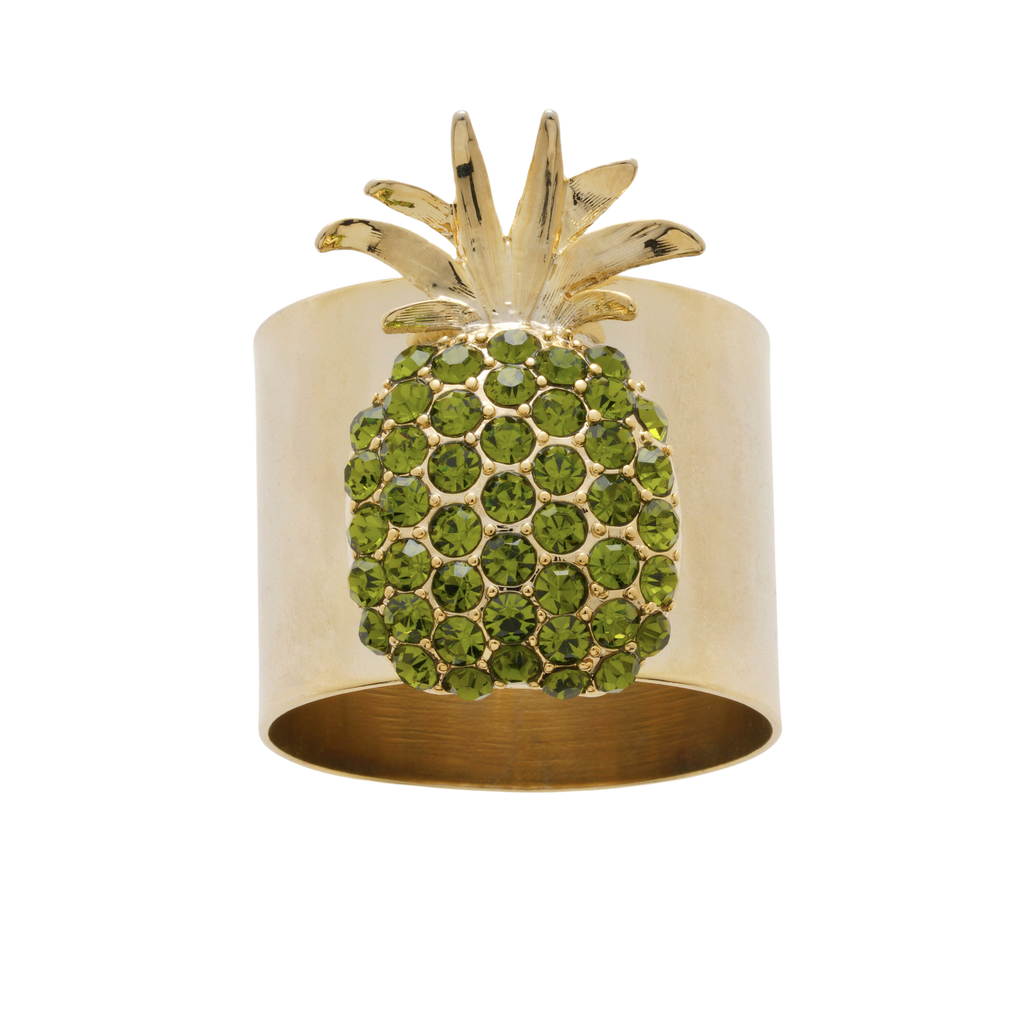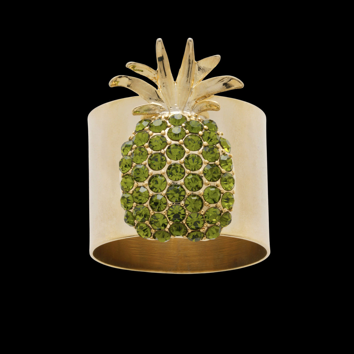 Inspired by her mother’s flair for holiday decorating, Joanna Buchanan has turned her love of travel and knowledge gleaned from twenty years in fashion retail into an eclectic line of tabletop, barware, gifts, and decor. Boasting sparkling crystals, the Pineapple Napkin Rings in Olive, Set of Two welcomes your guests to the table. Each one is sure to be a conversation starter before the first course is even served.