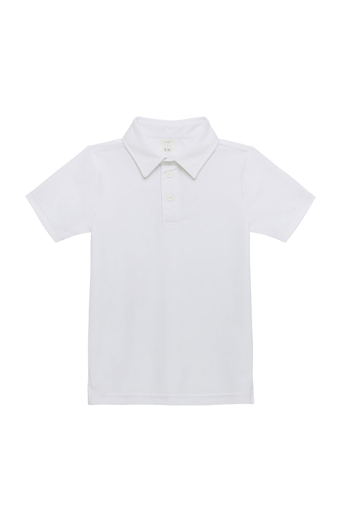 A polished blend of style and sport, Courtside Kids reimagines children’s activewear with performance fabrics, modern tailoring, and a classic athletic sensibility—made for everywhere from the playground to the country club. The Polo Shirt in White is a timeless essential designed to keep up with every activity, from school to sports and beyond. Crafted from a cool-touch, wrinkle-resistant, and moisture-wicking fabric, this elevated staple pairs effortlessly with a half-zip for cooler days.