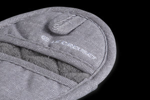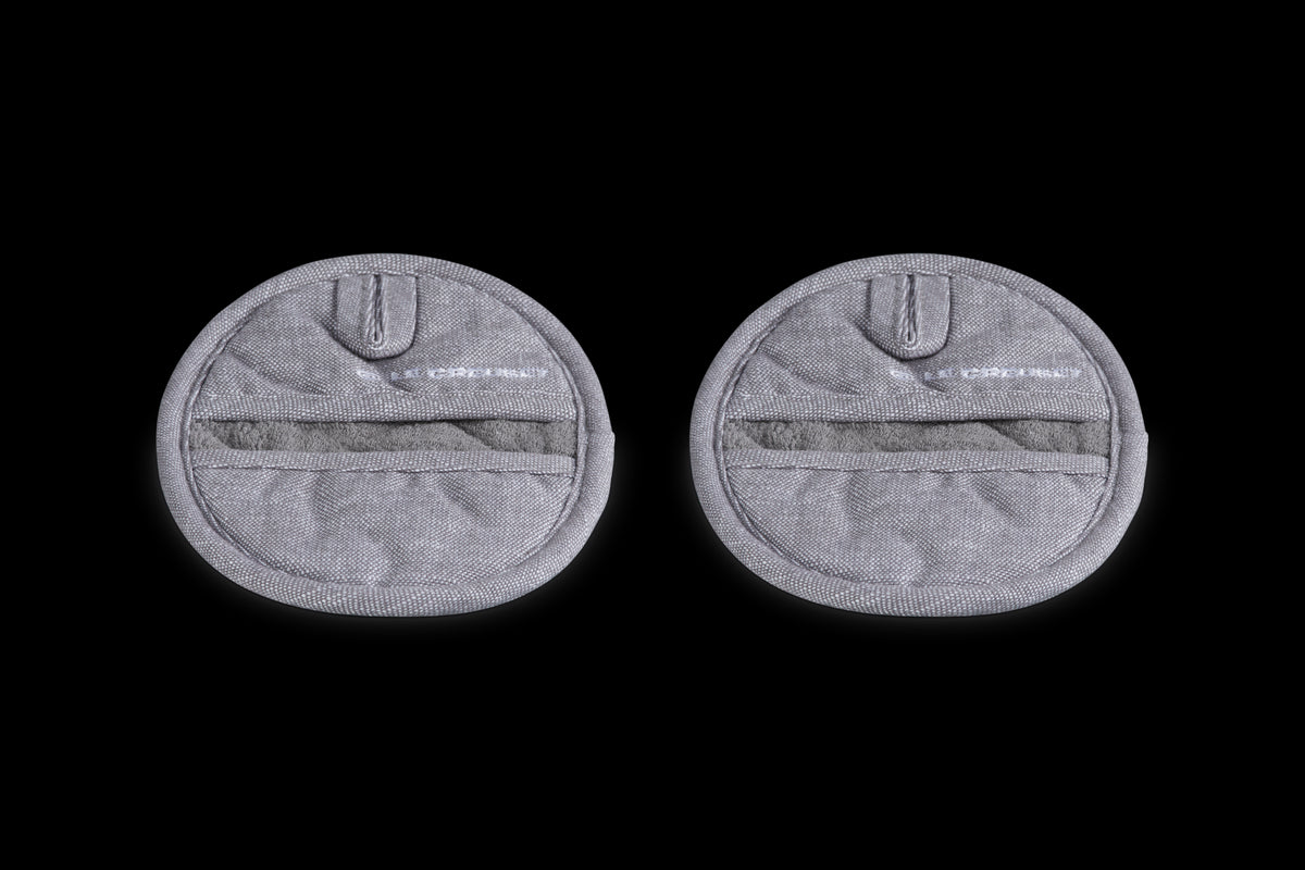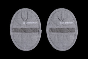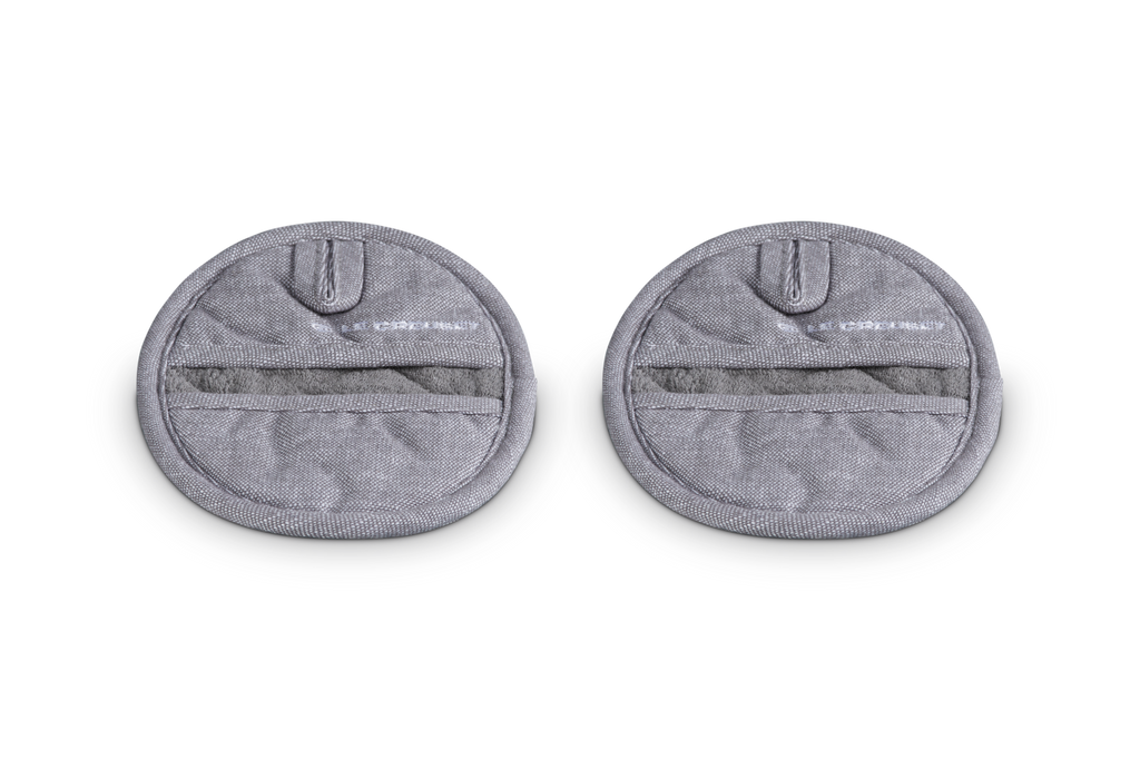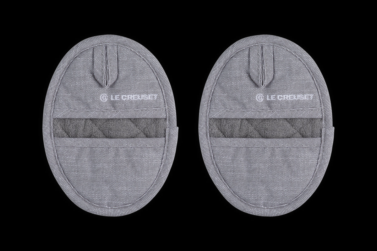Recognized for its strength and durability, as well as its beauty and quality, Le Creuset produced the first enameled cast iron cookware nearly a century ago. A tradition of maintaining the finest culinary craftsmanship, combined with the latest innovations, means Le Creuset is known for blending classic form with real function and that it’s made for home cooks and professional chefs alike. Designed for safety and comfort, the Pot Grips Charbon, Set of 2, provides a secure hold when handling hot cookware. Made from heat-resistant silicone with a soft terry cloth interior, these grips protect hands while offering flexibility and control during stovetop or oven use.