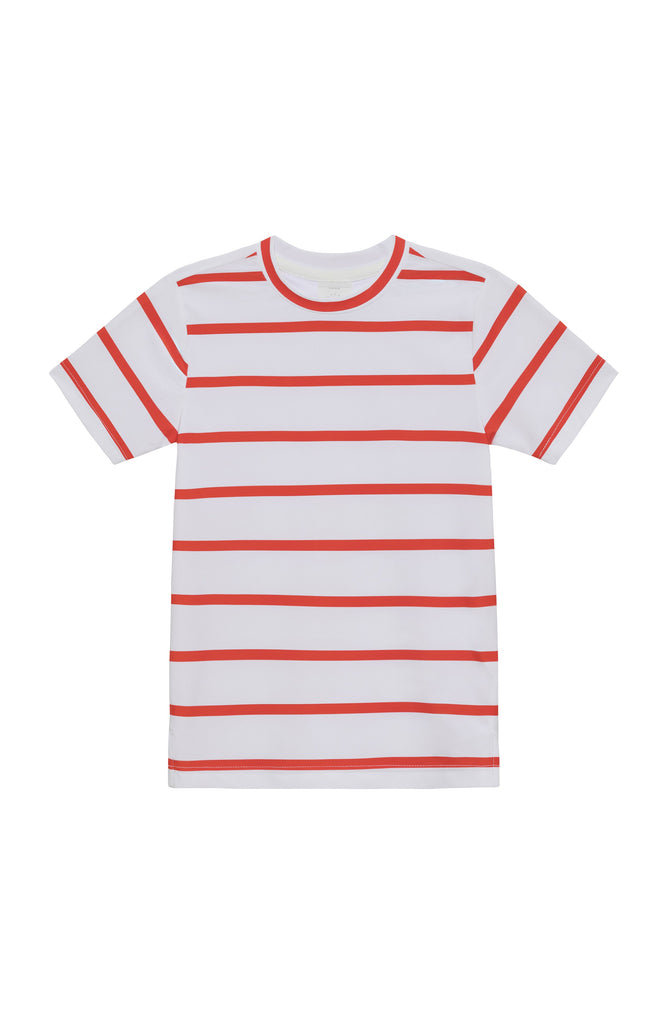 A polished blend of style and sport, Courtside Kids reimagines children’s activewear with performance fabrics, modern tailoring, and a classic athletic sensibility—made for everywhere from the playground to the country club. The Practice Shirt in Red & White Stripe is designed for everyday wear, balancing all-day comfort with athletic performance. Crafted from sustainable recycled nylon, this lightweight essential is moisture wicking, breathable, and durable, with a creamy-soft feel that keeps kids cool through every activity—from school days to backyard play.