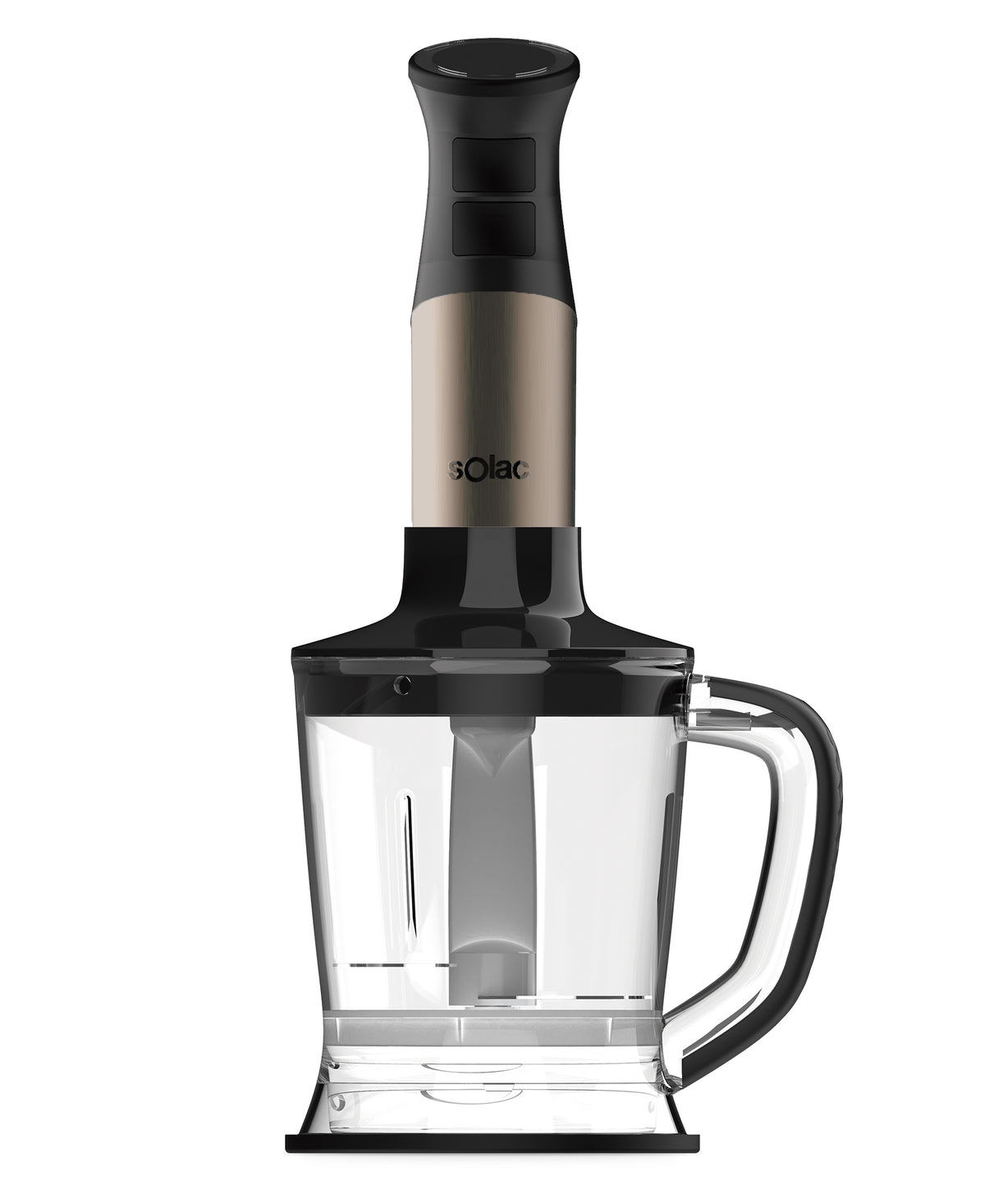 Since 1916, the Spanish brand Solac has provided small appliances to improve daily life in households around the world. Their stylish coffee machines, mixers, and kitchen appliances elevate any task, and meal, with thoughtful, innovative design, top quality materials, and dependability. Blend, chop, grind, purify, whisk and more with the Professional Stainless-Steel 1000W Hand Blender With Accessories Kit. Make smoothies, chop and grind nuts and herbs, and prepare creams and whips all with a press of a button, using the helpful, included accessories, all of which are dishwasher safe for easy clean-up.