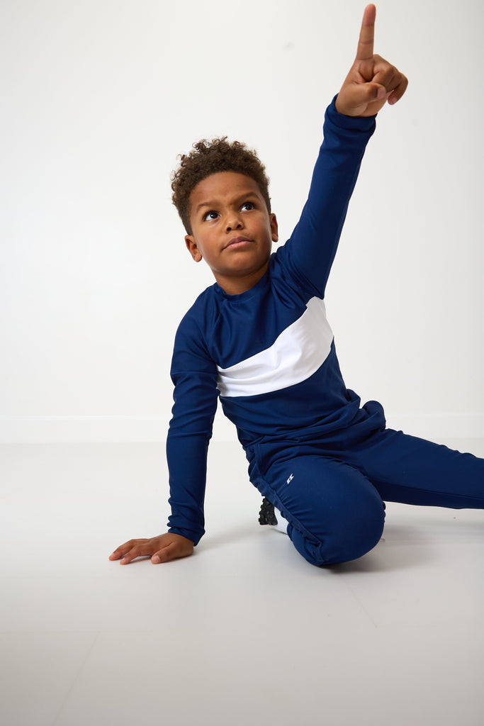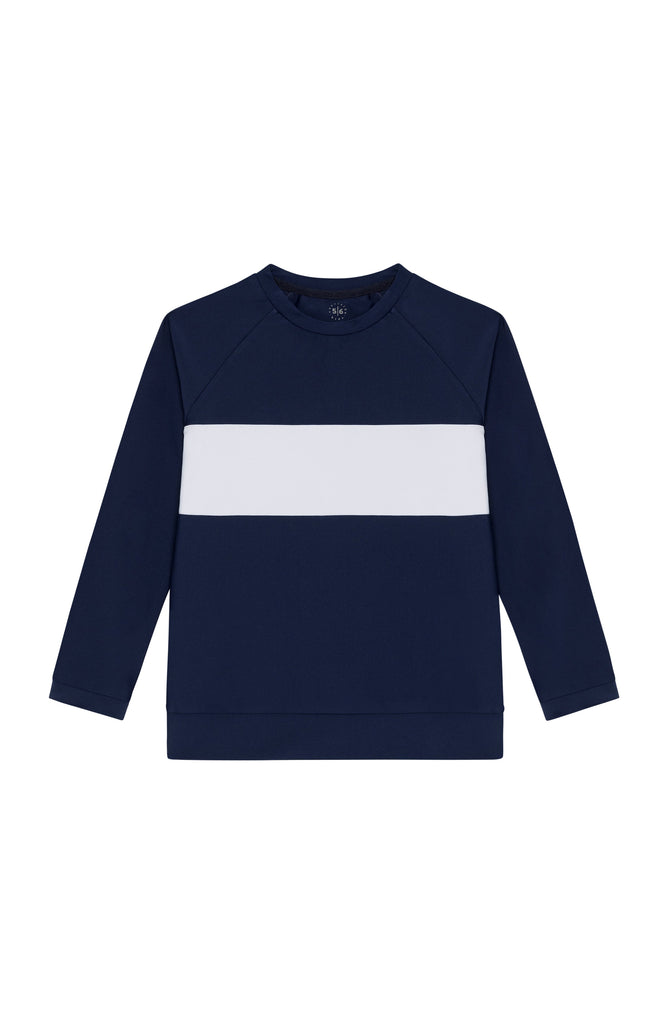 A polished blend of style and sport, Courtside Kids reimagines children’s activewear with performance fabrics, modern tailoring, and a classic athletic sensibility—made for everywhere from the playground to the country club. The Pullover in Navy & White is the ultimate layering piece, crafted from a creamy, mid-weight performance fabric that’s soft, durable, and designed for year-round versatility. Whether styled over a collared shirt for a polished look or layered for practice, this elevated essential keeps boys comfortable, cool, and ready for anything.