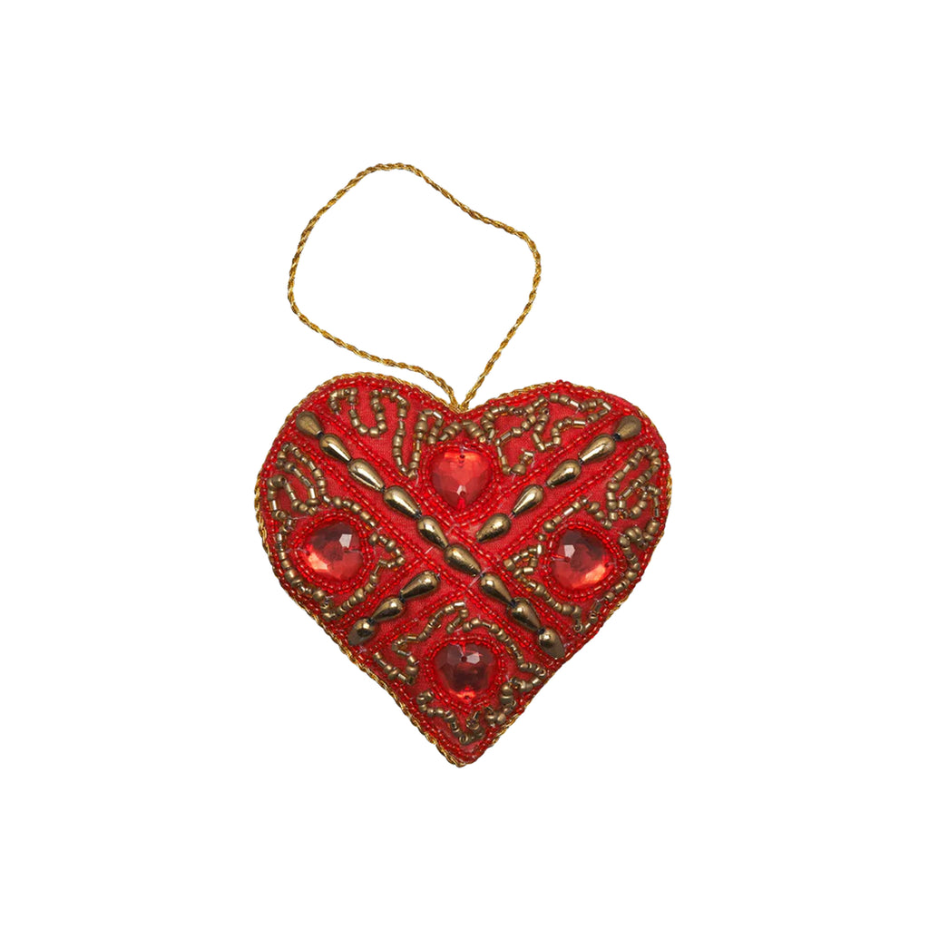 Founded in 2012, Henry Handwork brings joy to the everyday with handmade textiles for the home. Placing tradition and quality at the forefront, the brand resurrects the fading craft of hand-embroidery and needlework, embracing the heritage of finely-wrought European linens. The Red Heart Ornament is embellished with beads, metallic thread and hand-stitched on velveteen fabric. Handmade with love, this bold piece is a sweet, joyous addition to add to any tree.