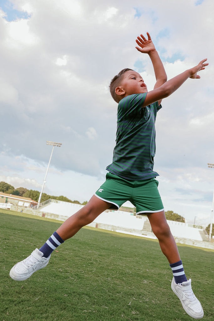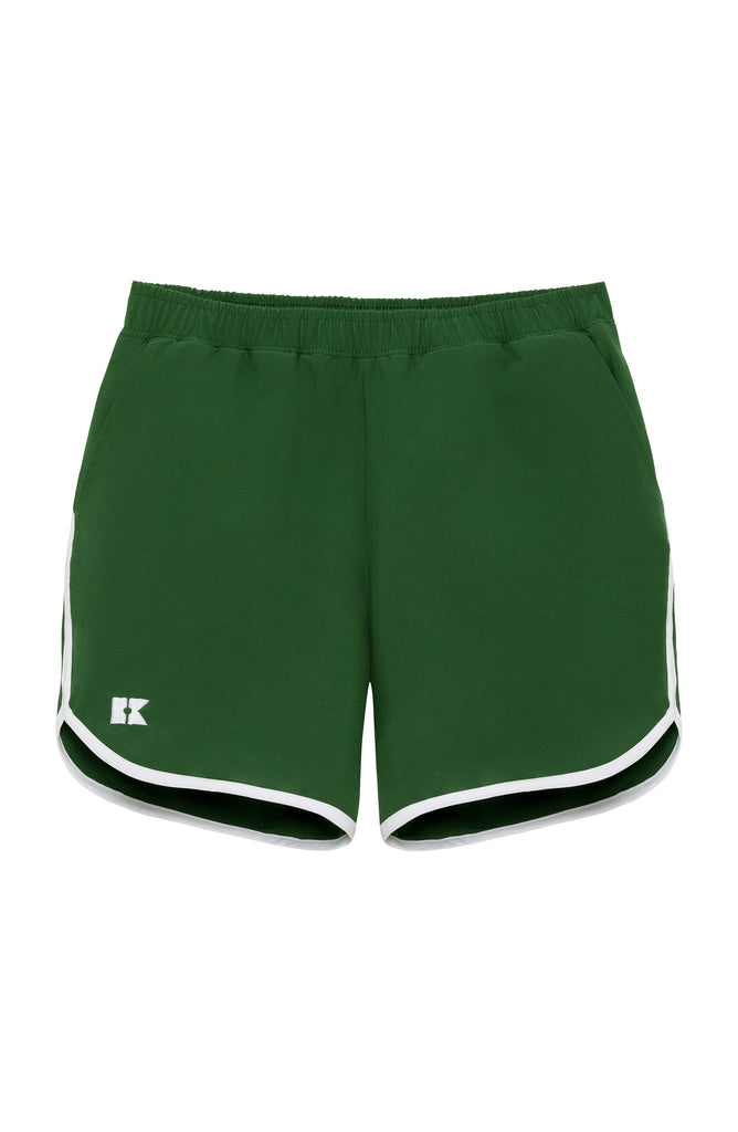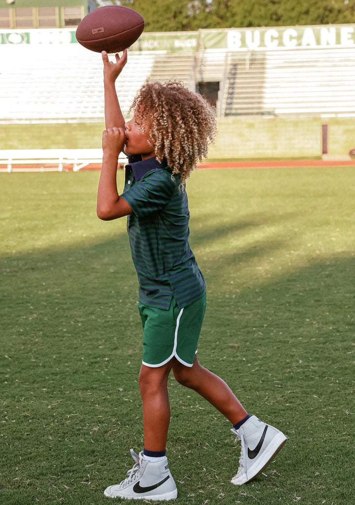 A polished blend of style and sport, Courtside Kids reimagines children’s activewear with performance fabrics, modern tailoring, and a classic athletic sensibility—made for everywhere from the playground to the country club. The Retro Super Short in Dark Green with White Piping brings a nostalgic twist to the brand’s signature Super Short silhouette. Crafted from a custom, ultra-soft performance fabric with four-way stretch, it features a built-in liner with anti-odor protection, contrast piping, and side pockets for collecting treasures of every kind. With a modern above-the-knee cut, these sporty shorts deliver both style and comfort for boys on the move.