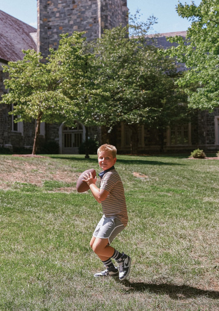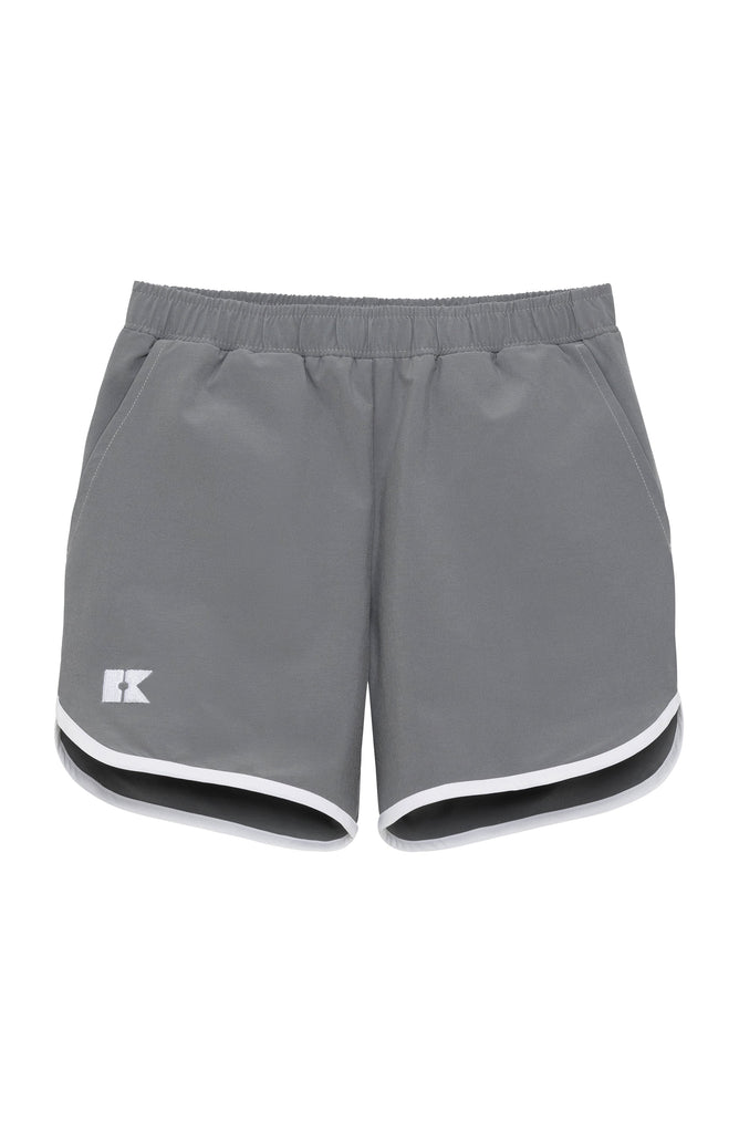A polished blend of style and sport, Courtside Kids reimagines children’s activewear with performance fabrics, modern tailoring, and a classic athletic sensibility—made for everywhere from the playground to the country club. The Retro Super Short in Gray with White Piping brings a nostalgic twist to the brand’s signature Super Short silhouette. Crafted from a custom, ultra-soft performance fabric with four-way stretch, it features a built-in liner with anti-odor protection, contrast piping, and side pockets for collecting treasures of every kind. With a modern above-the-knee cut, these sporty shorts deliver both style and comfort for boys on the move.