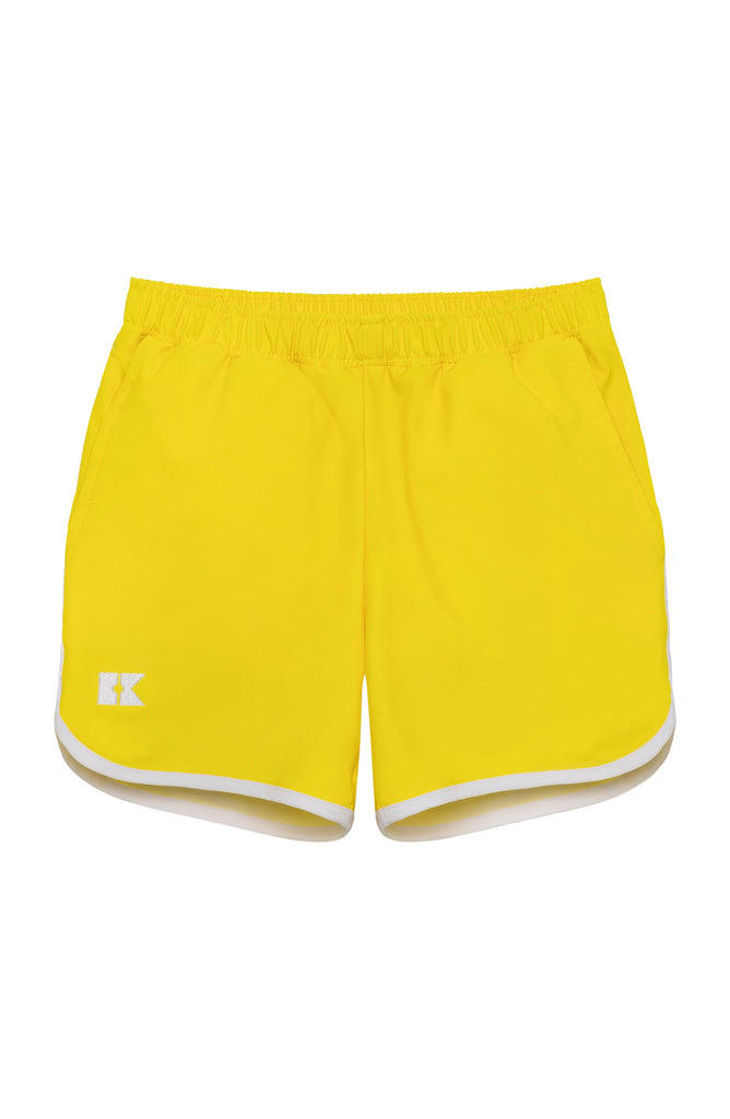 A polished blend of style and sport, Courtside Kids reimagines children’s activewear with performance fabrics, modern tailoring, and a classic athletic sensibility—made for everywhere from the playground to the country club. The Retro Super Shorts in Yellow with White Piping give the brand’s signature silhouette a vintage-inspired update. Crafted from a custom, ultra-soft performance fabric with four-way stretch, these shorts feature a built-in liner with anti-odor protection, contrast piping, and functional side pockets for all of life’s small adventures. With a sharp, above-the-knee cut, they’re made for boys who love to move and look effortlessly cool while doing it.