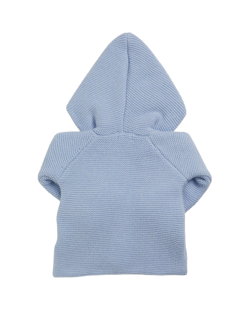 The Robin Knitted Jacket in Dusty Blue is a beautifully crafted staple designed for warmth and timeless charm. Made from a sumptuous merino wool and cashmere blend, it features a delicate cable-knit pattern, a classic rounded collar, and contrasting off-white cuffs. Finished with wooden-effect buttons and practical front pockets, it blends comfort and sophistication for everyday elegance.