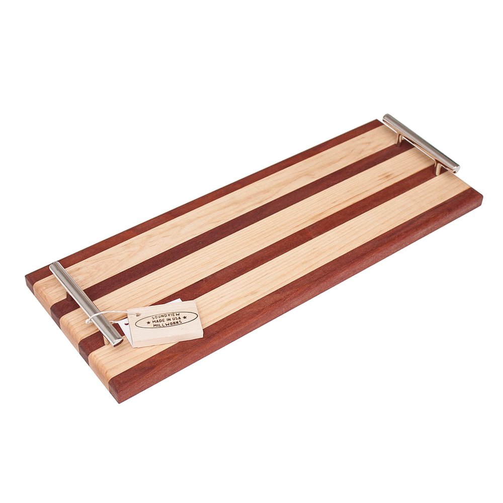 Evoking classic New England style, Soundview Millworks’ handcrafted boards pair solid maple and mahogany with thoughtful details inspired by the nautical world and beyond. Designed to elevate entertaining, each piece offers heirloom-quality craftsmanship with personalized options that make every gathering feel bespoke. The Rod Double Handle Serving Board features sleek chrome-plated brass rod handles that add a modern edge to its classic silhouette. Both stylish and versatile, it can be personalized to mark special occasions or meaningful milestones.