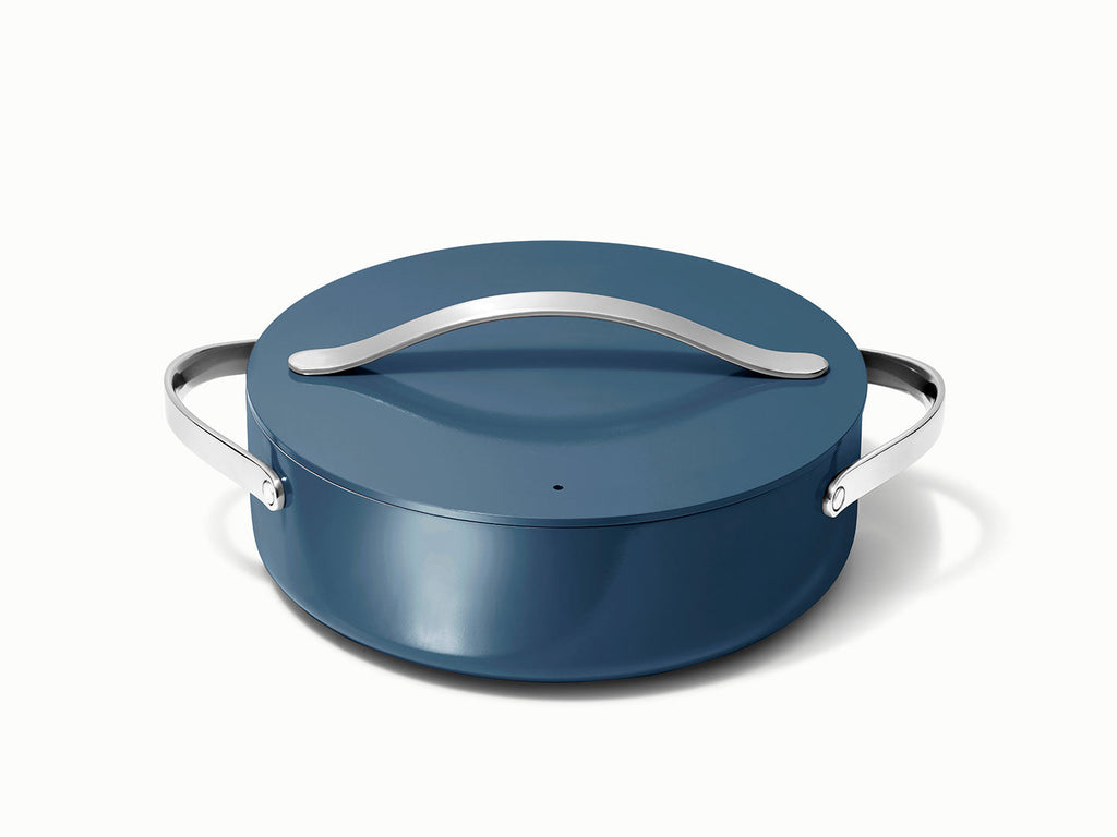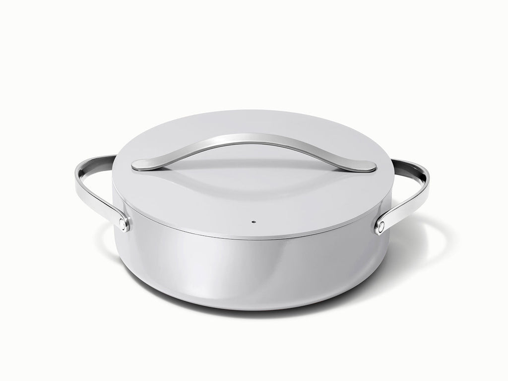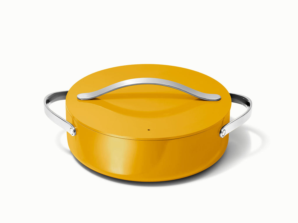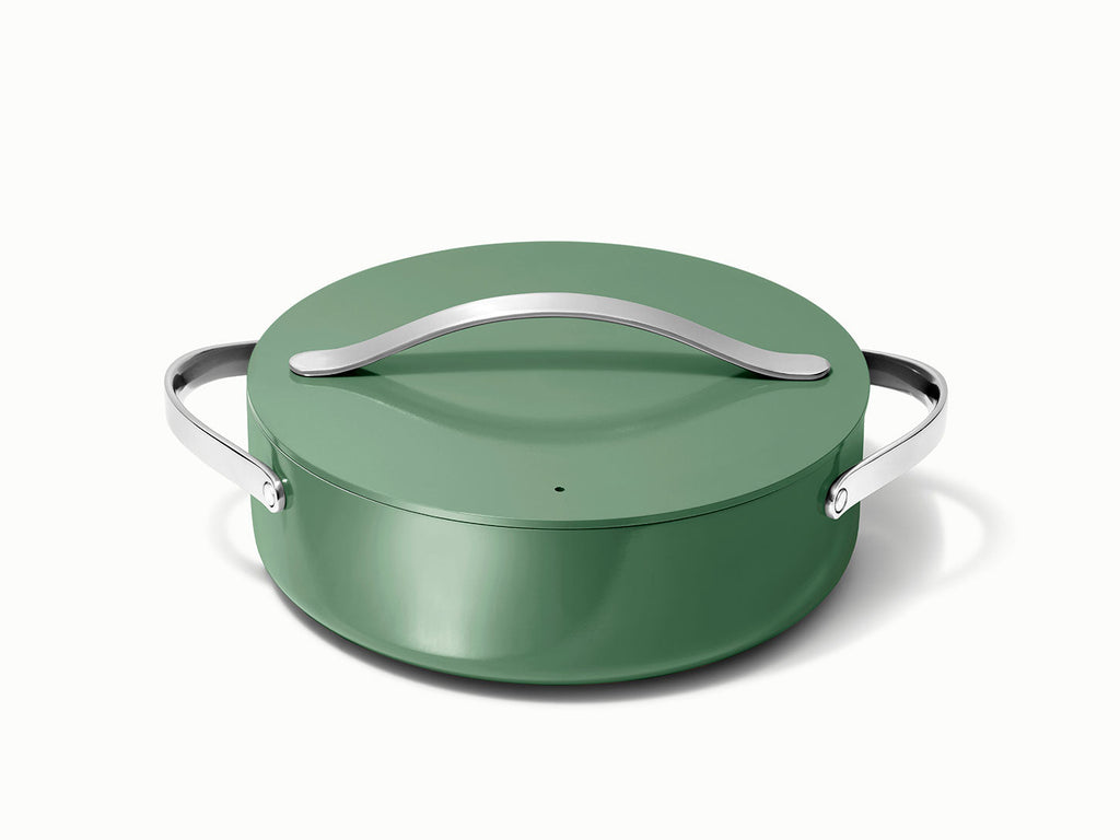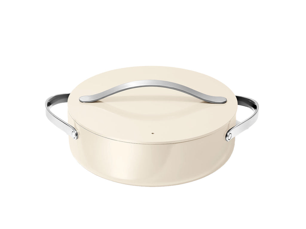 Designed for the modern home cook, Caraway offers thoughtfully crafted, non-toxic kitchenware that blends elevated functionality with contemporary style. The Rondeau Ceramic Pot is the ultimate multitasker for one-pan meals, featuring high straight walls for simmering, braising, and frying with ease. Its generous surface area ensures ideal browning before transitioning seamlessly from stovetop to oven to table. With dual stainless steel handles and a sleek, durable finish, this piece redefines versatile cooking.