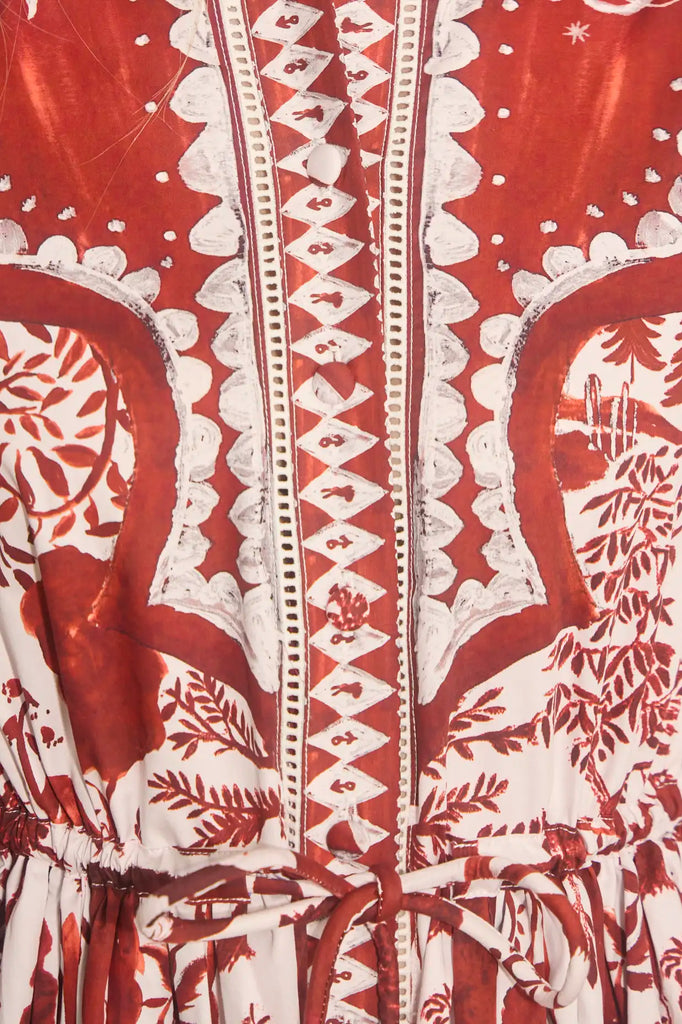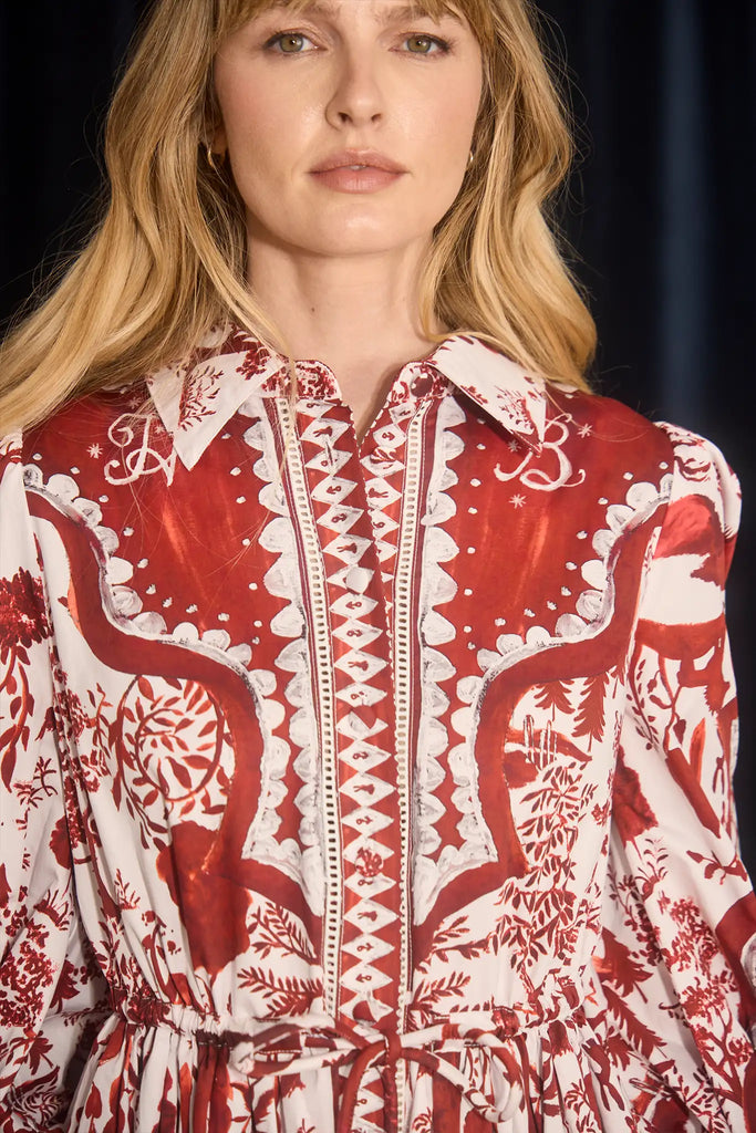 The Rosie Dress in Central Park Toile reimagines the classic shirtdress with timeless elegance. Crafted from lightweight cotton sateen in an exclusive hand-painted print, it features a full-length button front, collared neckline, and long sleeves with button cuffs. A drawstring waist cinches the silhouette for a flattering fit, while the distinctive print brings festive charm to any occasion. Effortlessly polished, it’s a holiday-season essential suited for everything from family gatherings to festive soirées.