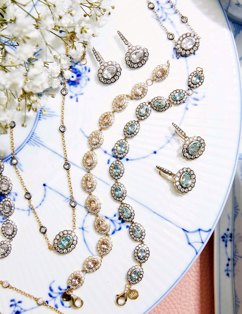 Gold foil, paua shell, black matte satin interior, magnetic closure. Comes with a detachable 44″ silver snake chain and dust bag.