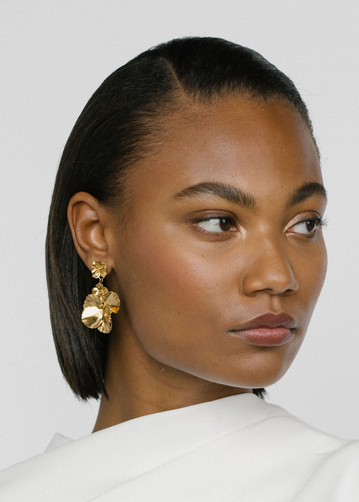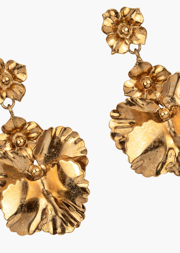 18K gold-plated brass. Sculptural floral detailing. Handmade in New York City.