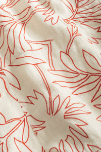 Empowering women through vivid hues and the joy of style, Sarah Doggett Evenson uses her archive of artistic prints, fine fabrics, and flattering silhouettes to make each Marie Oliver piece instantly uplifting. The Sandra Skirt in Tigerlily stands out with its streamlined silhouette and bold allover floral embroidery in a vibrant red-and-white palette. It is a wrap skirt with a full dose of feel-good energy.