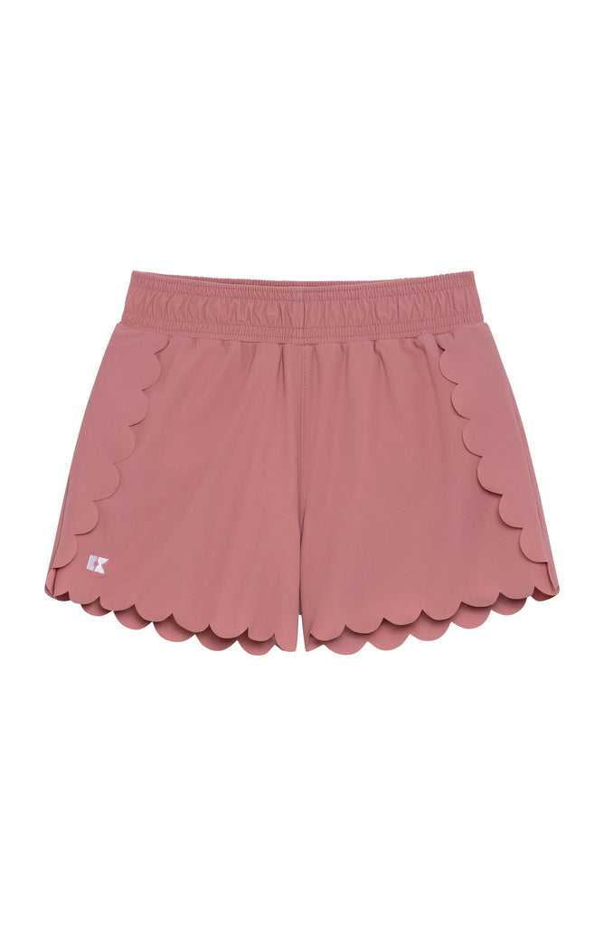 A polished blend of style and sport, Courtside Kids reimagines children’s activewear with performance fabrics, modern tailoring, and a classic athletic sensibility—made for everywhere from the playground to the country club. The Scalloped Shorts in Dusty Pink blend playful charm with polished design, featuring a sweet scalloped hem and a tailored silhouette. Crafted from lightweight, breathable performance fabric with an elastic waistband, these shorts move with her—keeping her cool, comfortable, and confidently stylish from the court to the clubhouse.
