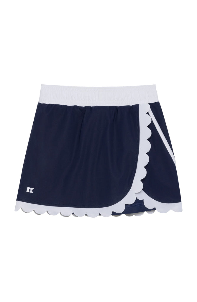 A polished blend of style and sport, Courtside Kids reimagines children’s activewear with performance fabrics, modern tailoring, and a classic athletic sensibility—made for everywhere from the playground to the country club. The Scalloped Skort in Navy brings playful polish to activewear with its crisp white scalloped trim and waistband. Lightweight and quick drying, this skort features built-in shorts for comfort and coverage—keeping her ready to move, twirl, and play with ease both on and off the court.