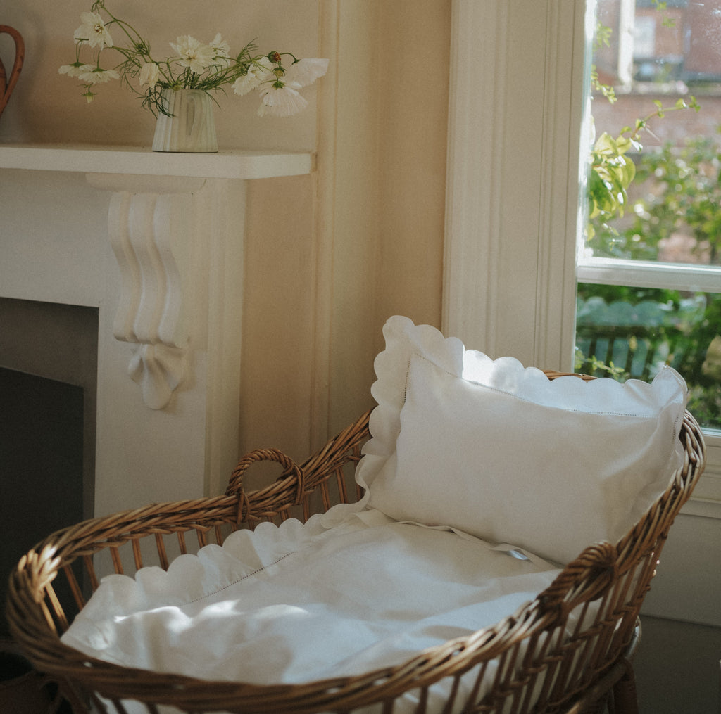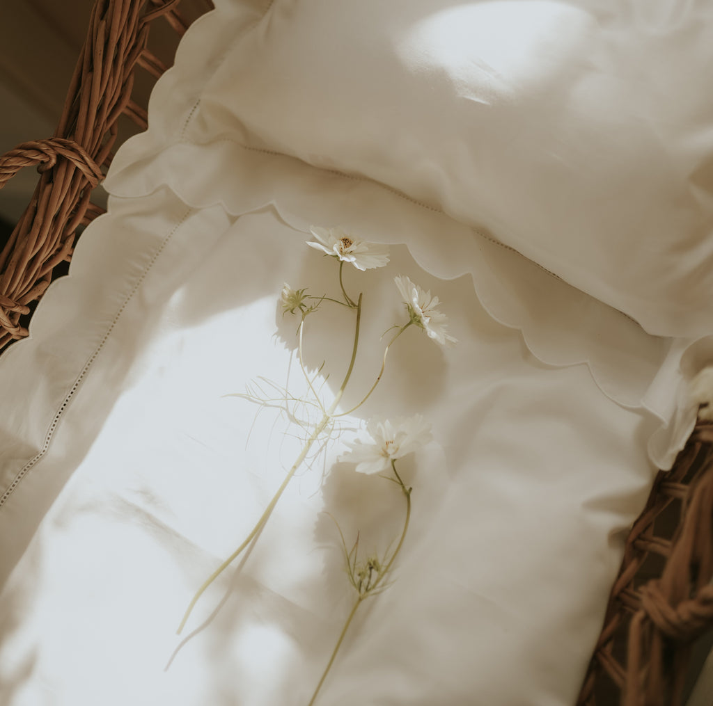 Inspired by Hygge—a Scandinavian concept that emphasizes the innate contentment arising from a cozy and comfortable atmosphere—Gooselings offers serene essentials for children and babies that bring stylish serenity to any space they touch. The Scalloped Starlight Baby Duvet in White is a lightweight and breathable layer, thoughtfully crafted to provide comfort and ease throughout the year. With its luxurious cotton sateen finish and elegant detailing, it offers both practicality and timeless beauty, making it a cherished nursery essential and a thoughtful gift.
