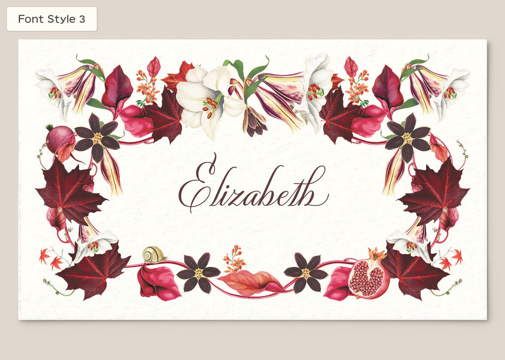 The Scarlet Maple Place Cards bring an autumnal elegance to any tablescape. Featuring a warm, seasonal motif printed on premium cardstock, each card offers a sophisticated way to guide guests to their seats. Pair with coordinating menus to create a harmonious and inviting setting for fall gatherings.