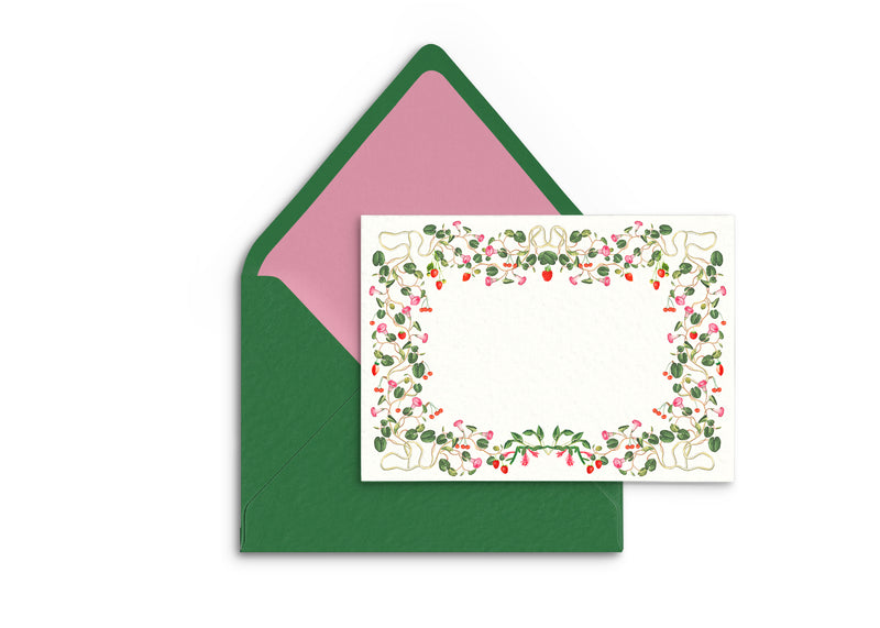 10 to 500 stationery and hand-lined euro-flap envelopes included. Premium heavy-weight cardstock with a plush eggshell finish. Each set is packaged in a signature Casa Felix box and elegantly tied with a ribbon. The Casa Felix logo and a small design detail are printed on the back of each card. Made in the USA.