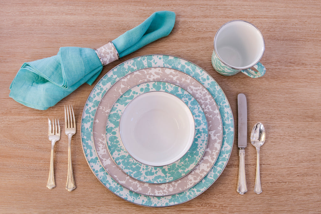 Founder Peggy Hedgpeth created Golden Rabbit to make everyday entertaining feel effortless. With functionality, safety, and durability at the forefront, the brand’s distinctive designs—from traditional enamelware to kid-friendly sets—set it apart in kitchens and dining rooms the world over. Coated porcelain enamel and trimmed with stainless steel to prevent chipping, the Dinner Plates in Sea Glass, Set of 4 adds dash of style and sophistication to your service of meats off the grill, fresh veggies, salads, or any of your favorite mains.