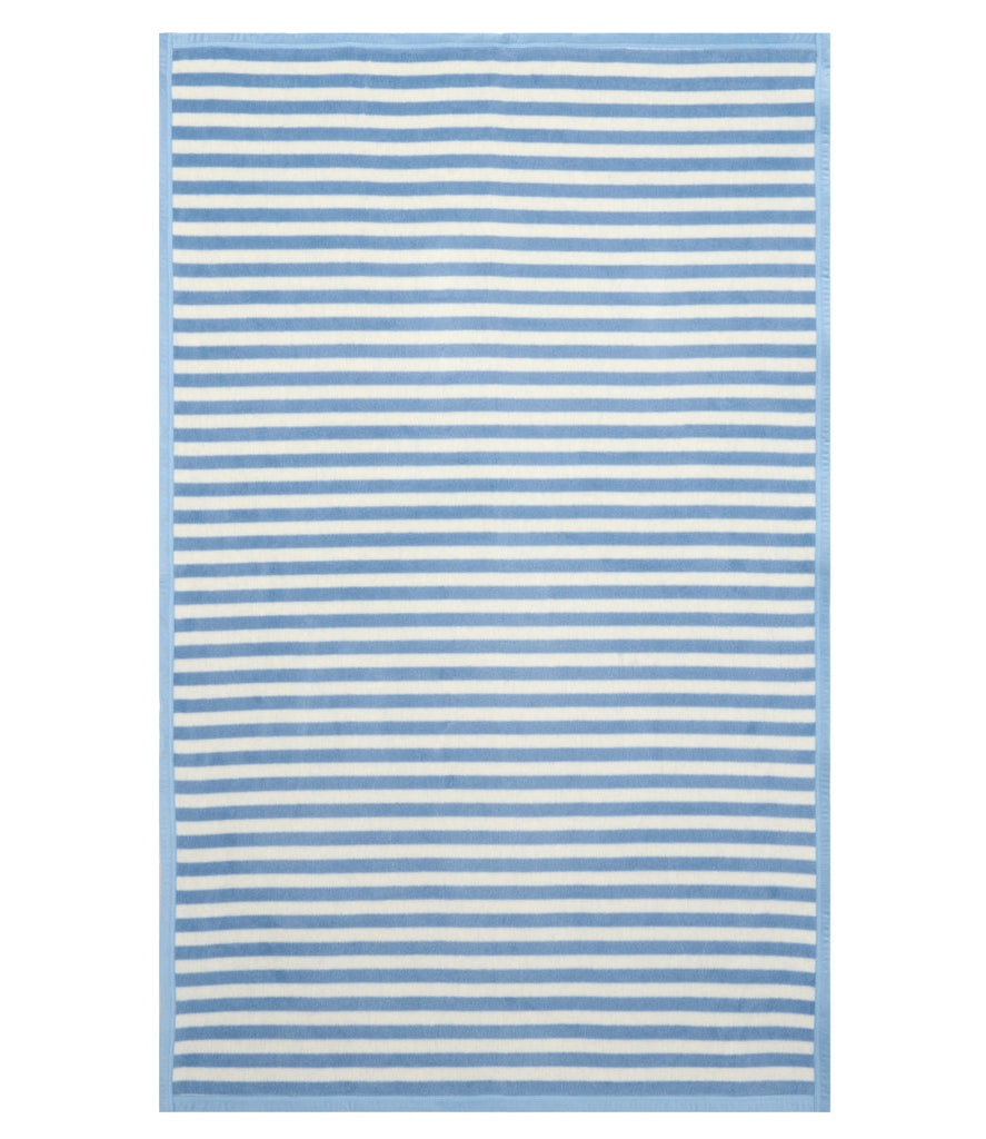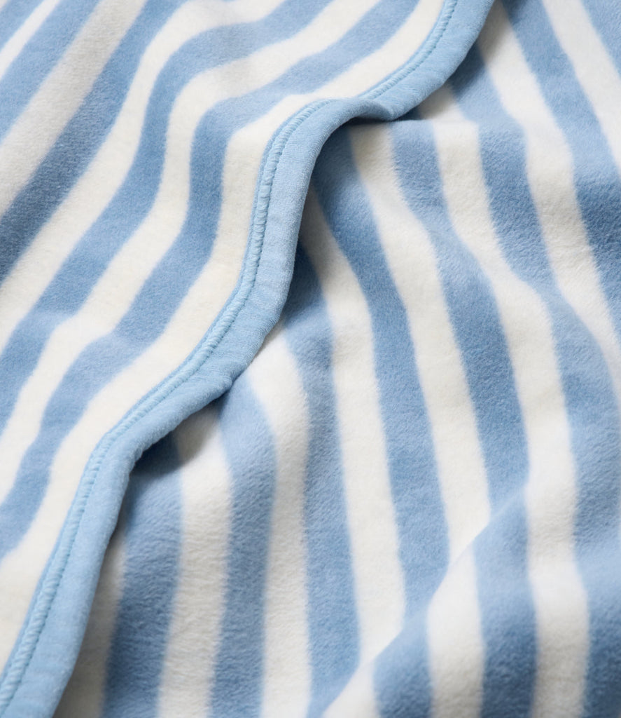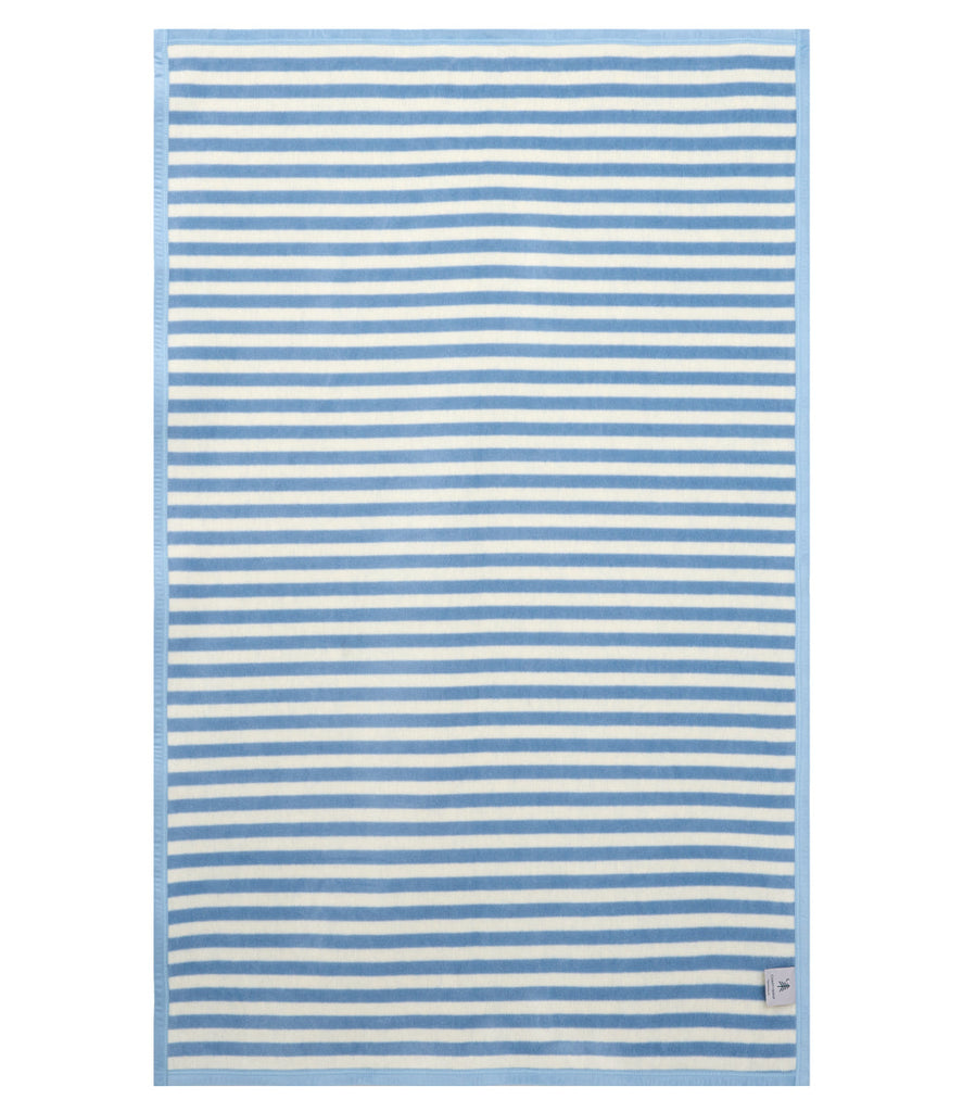 From a mother-daughter duo in Chappaquiddick, ChappyWrap makes soft, calming, easy to care for blankets. Crafted in a unique jacquard with a careful, long-lasting blend of plush, natural cotton, and high-performance fiber—ChappyWrap pieces carry all the comfort and warmth of those blankets we remember from our youth. Catch your school spirit with the Sideline Stripe Bluebell Midi Blanket, designed with sideline-ready stripes in classic campus colors and ready to root for the home team. Wonderfully sized for your lap or your little’s bed, this versatile Midi Blanket is ideal for home, travel, and game day excitement.
