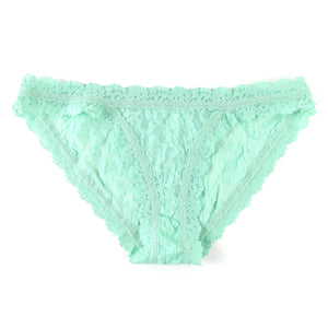 Hanky Panky's signature V-front and V-back waistband revolutionized the world of lingerie 30 years ago and has put an end to panty-lines. Soft and stretchy, Hanky Panky officially makes the World's Most Comfortable Thong. The Signature Lace Brazilian Bikini in Mint Sprig Green fits low on the hips and rolls up easily in your lingerie drawer.