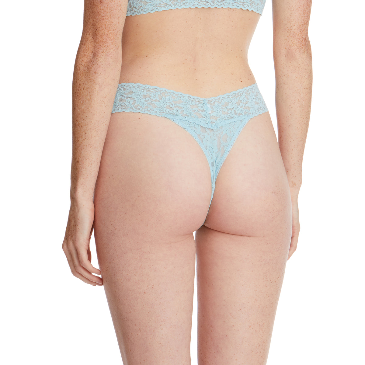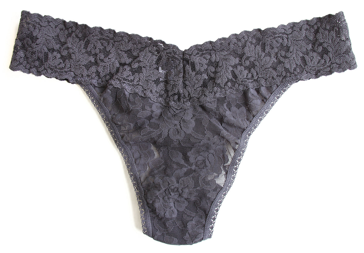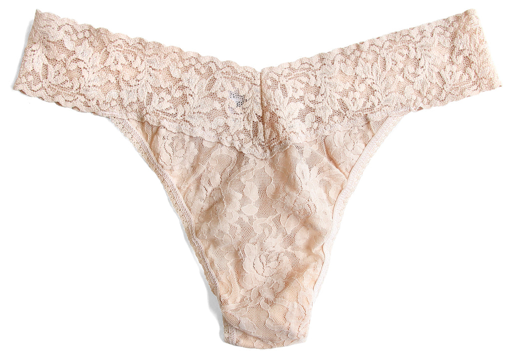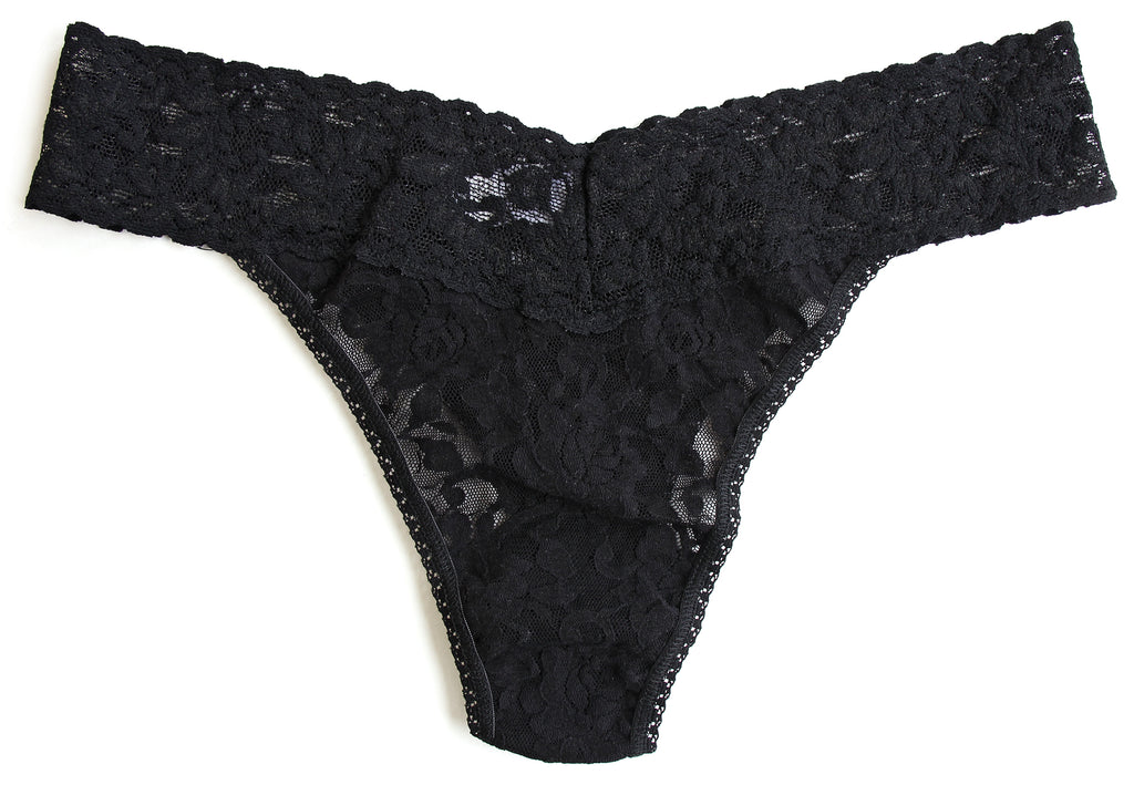 Hanky Panky's signature V-front and V-back waistband revolutionized the world of lingerie 30 years ago and has put an end to panty-lines. Soft and stretchy, Hanky Panky officially makes the World's Most Comfortable Thong. The Signature Lace Original Rise Thong fits high on the hips and rolls up easily in your lingerie drawer.