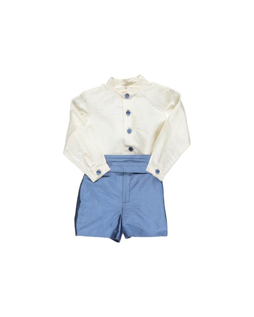 The Silk Cummerbund in Ocean Blue lends a refined finishing touch to formal ensembles. Crafted from 100% silk, this pleated design features covered button fastening for a classic, tailored look. Elegant and timeless, it’s an essential detail for pageboys and special occasions alike.