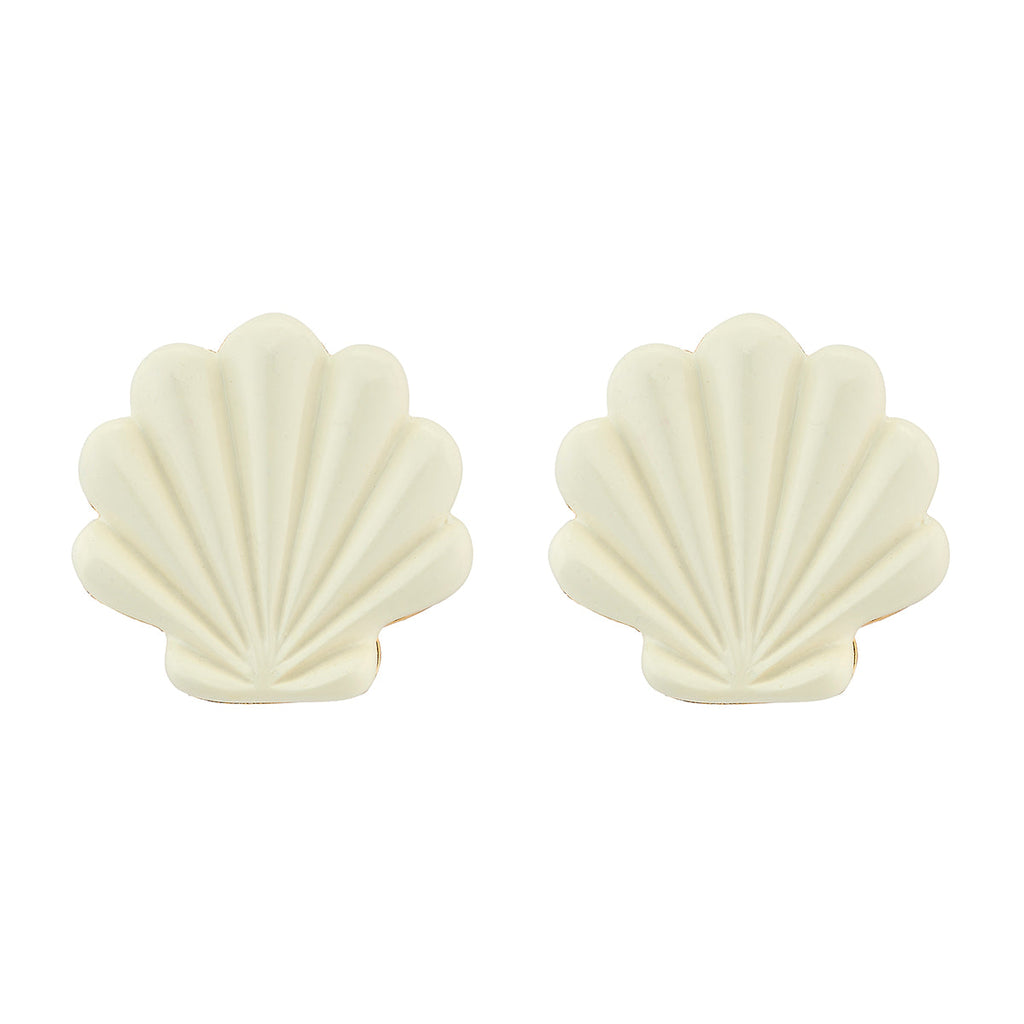 Ivory resin scallop shell stud. Clip-on style (no post).