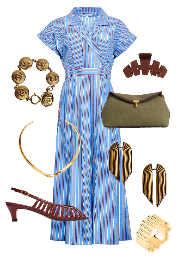 Hunter Bell brings joyful, polished pieces to life with a distinctive mix of bold pattern, thoughtful tailoring, and feminine charm. The Sloane Dress in Marfa Stripe offers an effortlessly refined take on the classic wrap silhouette. Designed with a flattering V-neckline and short banded sleeves, it features a relaxed bodice, fitted waist, and full midi-length skirt for fluid movement. Cut in breathable cotton with crisp structure, this tailored piece feels equally suited for sun-soaked days or early fall layering.