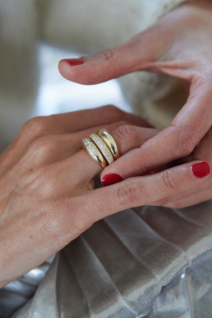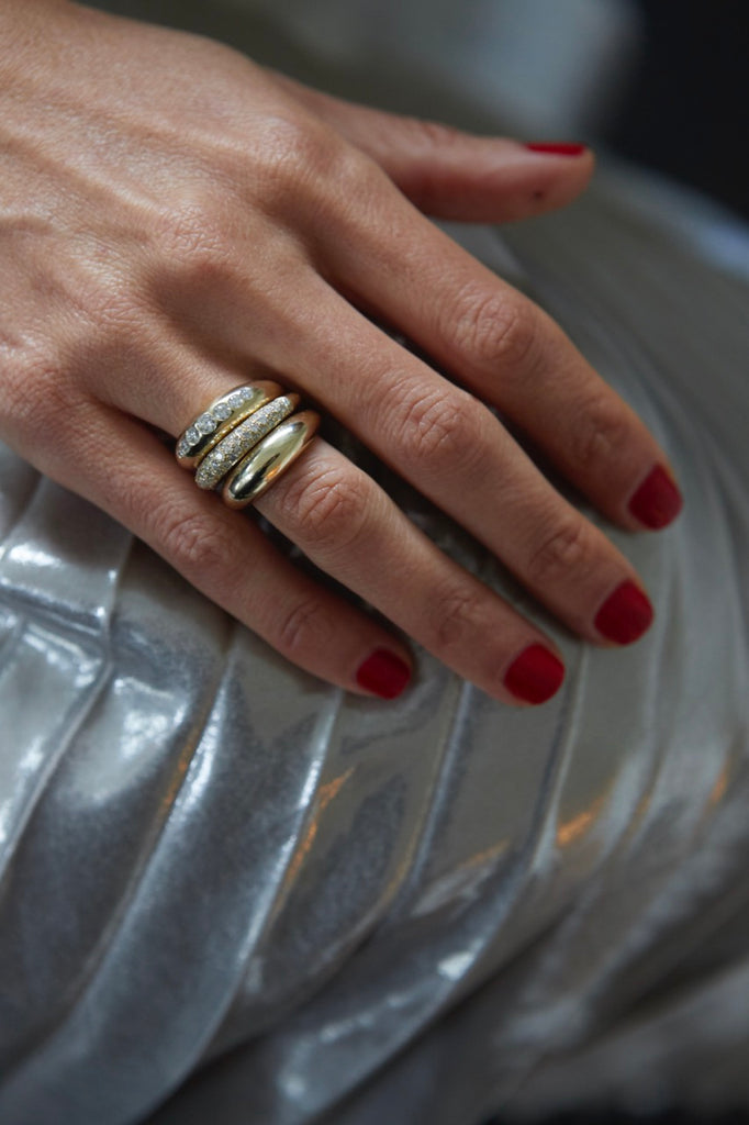 Sisters Gabriela and Teresita Artigas embrace the simple beauty in complexity, which is a credo that manifests in their Los Angeles-based jewelry brand. The duo is perpetually inspired by their upbringing in Mexico City heritage to design fine accessories for the modern woman. These heirloom pieces are meant for everyday wear—wherever the next adventure awaits. With its rounded, tapered shape and ascending diamonds, the Small Balloon Ring masterfully balances width and volume on the finger.