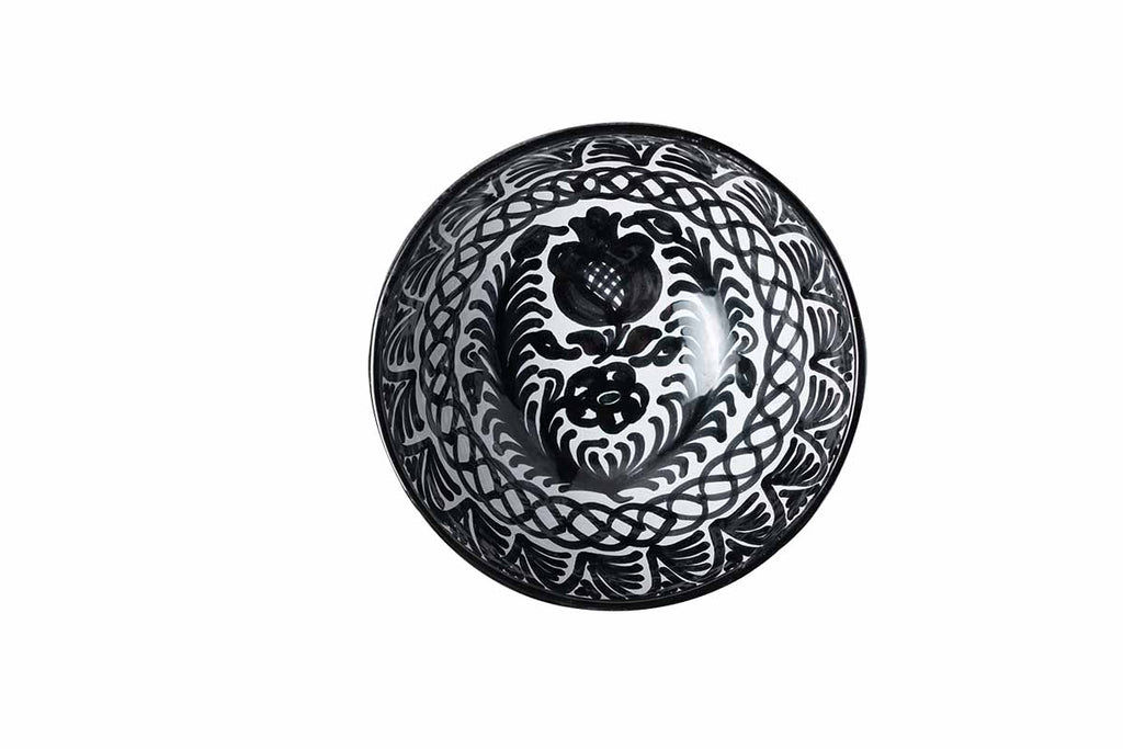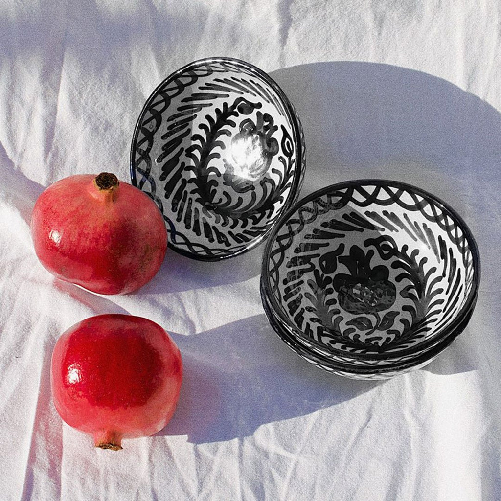 Hand-painted with traditional Spanish designs, the Casa Blanca & Negra Medium Bowl is part of a limited-edition collaboration between Pomelo Casa and Unemployed Magazine. The subtly striking monochromatic look is well-suited for dining, table decoration, or as wall decor. (There are two holes on the back that make for easy hanging.) Each Pomelo Casa piece is handmade in Southern Spain by ceramicists who have been using the same techniques for over five centuries and may have a slight variation in pattern as a result. Minor imperfections are not considered flaws but instead add to the authenticity and charm of these beautiful home goods.