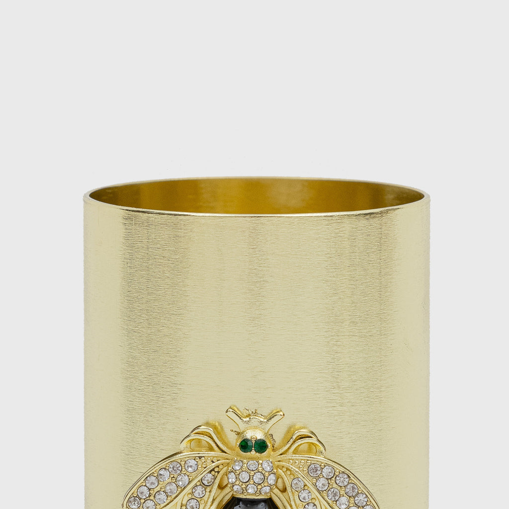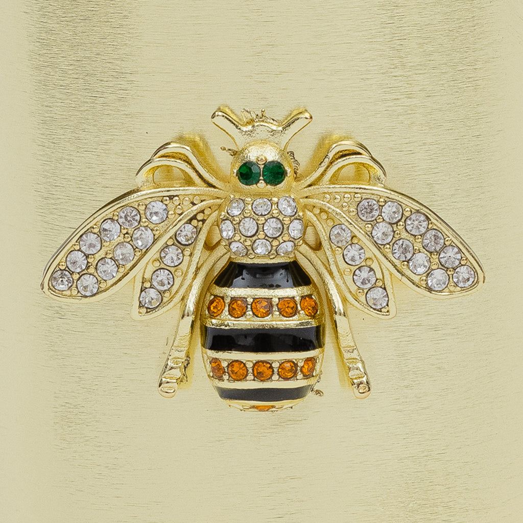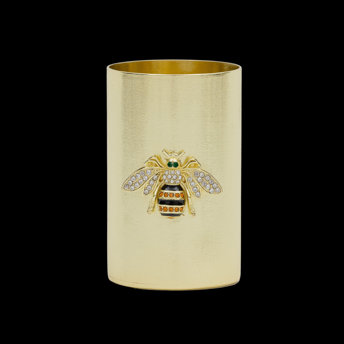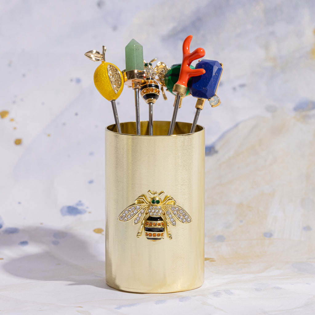 Inspired by her mother’s flair for holiday decorating, Joanna Buchanan has turned her love of travel and knowledge gleaned from twenty years in fashion retail into an eclectic line of tabletop, barware, gifts, and decor. Cocktail picks, pens, straws, the list goes on. You can stock the Stripey Small Bee Pot with whatever will fit in this bedazzled receptacle.