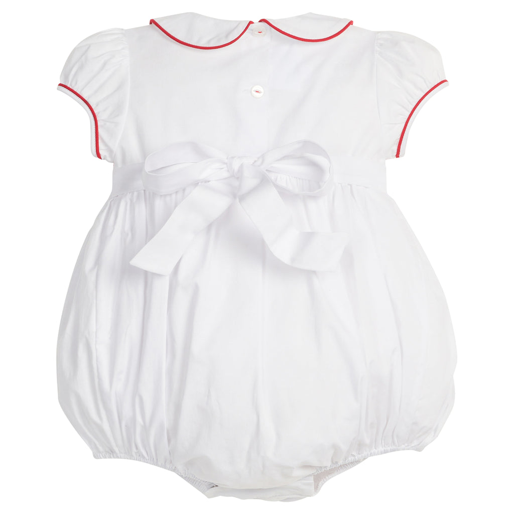 Shannon Latham founded Little English in 2004 with the belief that children should always be well-dressed. Employing hand-smocking, hand-embroidery, and the very best fabrics, Shannon and her daughter design timeless pieces that will be worn for generations to come. The Heirloom Christmas Collection features traditional holiday styles with exquisite hand-smocked details for the whole family. The Smocked Claiborne Bubble in Holly is a sweet silhouette for baby girls, designed with a ruffled collar, capped sleeves, and intricate smocking across the chest adorned with tiny red and green holly embroidery. Complete the look with the Embroidered Essential Cardigan – Holly for festive charm.