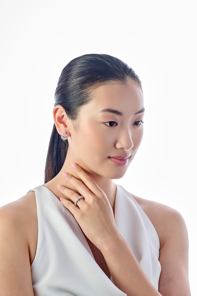London-based Anabela Chan’s background in architecture and luxury fashion led to the first fine jewelry line to champion laboratory-grown gemstones. Today, its artisanal craftsmanship and sustainable innovations have found a place in the collections of royals, Rihanna, Taylor Swift, and sophisticated women worldwide. The Snowflower Twinkle Ear-Jackets showcase delicate versatility, crafted in rhodium vermeil with 14K gold posts and designed to be worn in two unique variations. Each earring is intricately pavé-set with laboratory-grown pear, round, and marquise-cut simulated white diamonds for a radiant, multidimensional sparkle.