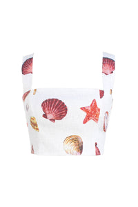 Founded by Daniela Panaro, No Pise La Grama, which translates to “don’t step on the grass,” is a Venezuelan fashion brand known for its feminine, timeless designs. As the name suggests, there’s a strong connection to nature through the elevated yet laid-back aesthetic inspired by travel and the art of traditional craftsmanship. The Sotavento Top in Conchitas White Print captures coastal charm through its delicate seashell motif and airy linen construction. Lightweight and fresh, this piece brings an effortless elegance to summer styling—ideal for pairing with relaxed tailoring or breezy skirts.