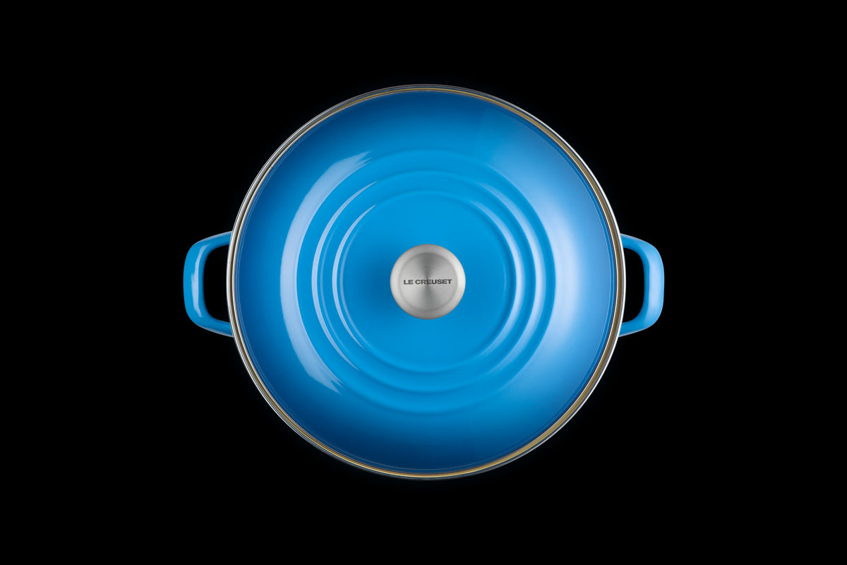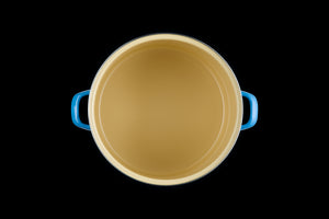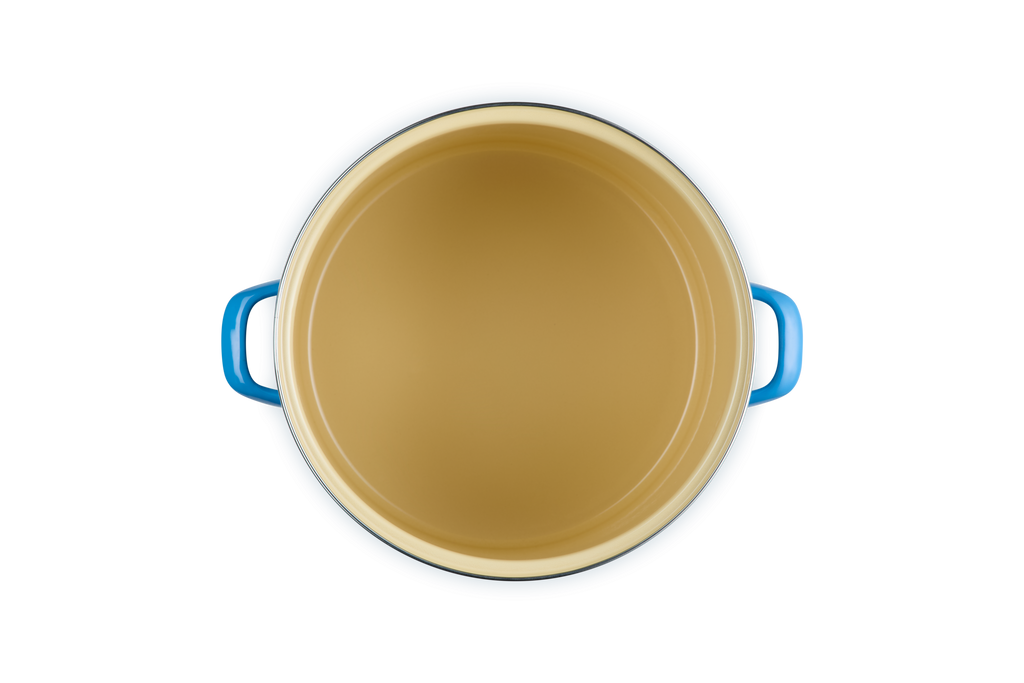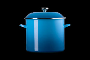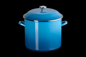 Recognized for its strength and durability, as well as its beauty and quality, Le Creuset produced the first enameled cast iron cookware nearly a century ago. A tradition of maintaining the finest culinary craftsmanship, combined with the latest innovations, means Le Creuset is known for blending classic form with real function and that it’s made for home cooks and professional chefs alike. The 16 qt. Stockpot in Marseille features tall, straight sides and generous capacity, making it ideal for preparing soups, stocks, seafood boils, and pasta for a crowd. Crafted from fast-heating carbon steel and finished in a soft glaze, it brings utility and beauty to large-scale cooking.