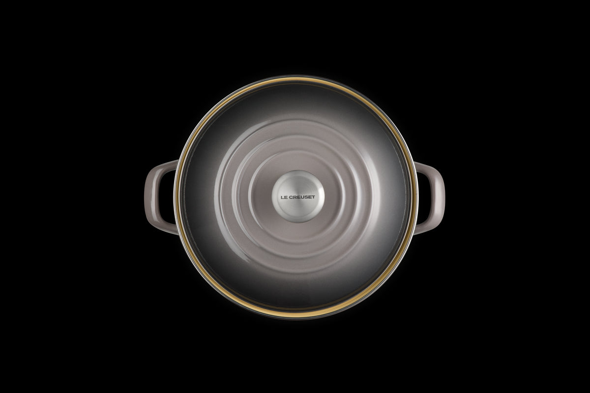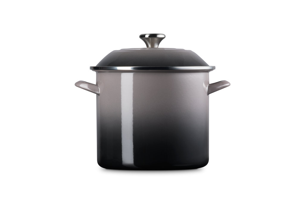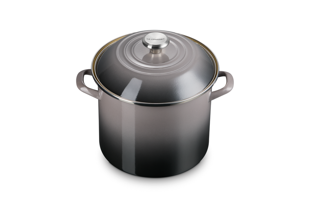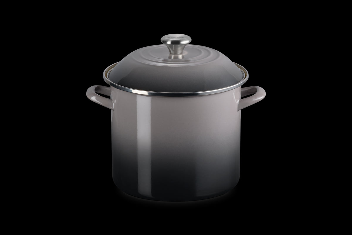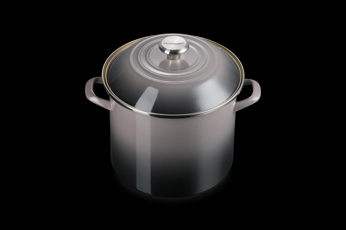 Recognized for its strength and durability, as well as its beauty and quality, Le Creuset produced the first enameled cast iron cookware nearly a century ago. A tradition of maintaining the finest culinary craftsmanship, combined with the latest innovations, means Le Creuset is known for blending classic form with real function and that it’s made for home cooks and professional chefs alike. The 10 qt. Stockpot in Oyster features tall, straight sides and generous capacity, making it ideal for preparing soups, stocks, seafood boils, and pasta for a crowd. Crafted from fast-heating carbon steel and finished in a soft glaze, it brings utility and beauty to large-scale cooking.