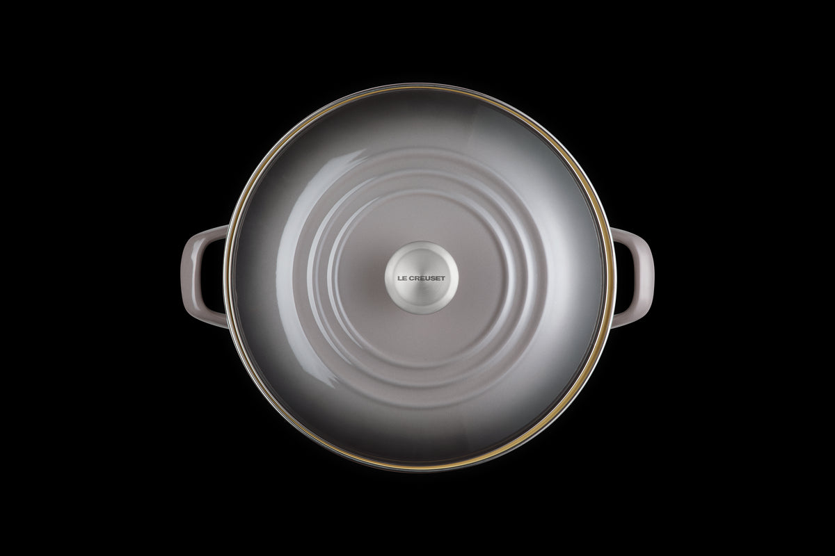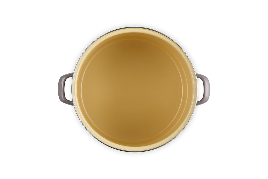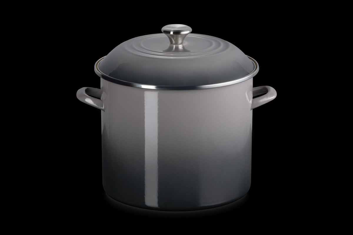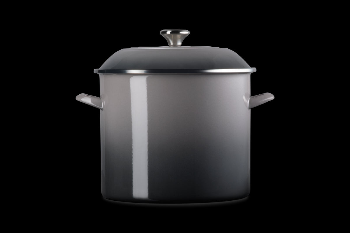 Recognized for its strength and durability, as well as its beauty and quality, Le Creuset produced the first enameled cast iron cookware nearly a century ago. A tradition of maintaining the finest culinary craftsmanship, combined with the latest innovations, means Le Creuset is known for blending classic form with real function and that it’s made for home cooks and professional chefs alike. The 16 qt. Stockpot in Oyster features tall, straight sides and generous capacity, making it ideal for preparing soups, stocks, seafood boils, and pasta for a crowd. Crafted from fast-heating carbon steel and finished in a soft glaze, it brings utility and beauty to large-scale cooking.