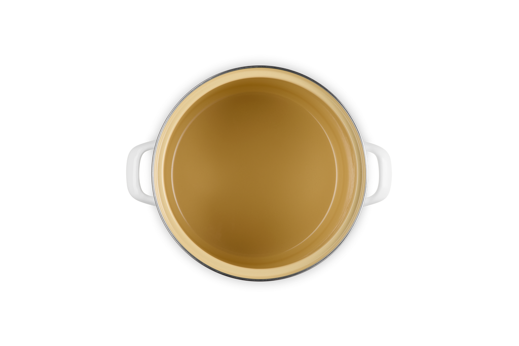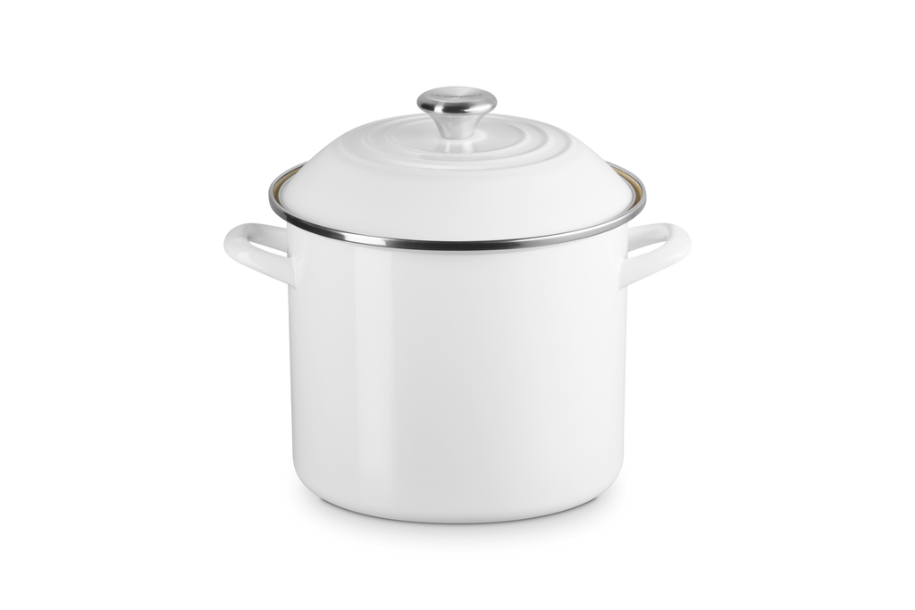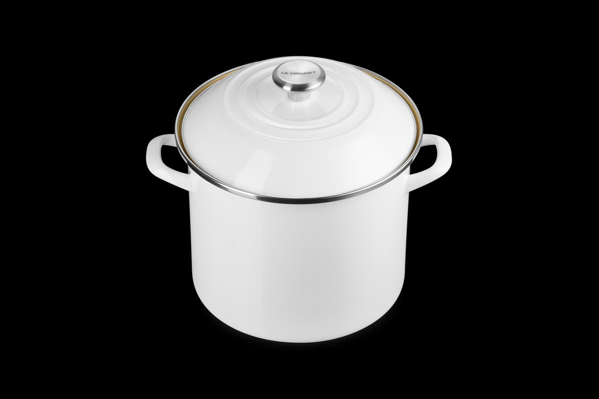 Recognized for its strength and durability, as well as its beauty and quality, Le Creuset produced the first enameled cast iron cookware nearly a century ago. A tradition of maintaining the finest culinary craftsmanship, combined with the latest innovations, means Le Creuset is known for blending classic form with real function and that it’s made for home cooks and professional chefs alike. The 8 qt. Stockpot in White features tall, straight sides and generous capacity, making it ideal for preparing soups, stocks, seafood boils, and pasta for a crowd. Crafted from fast-heating carbon steel and finished in a soft glaze, it brings utility and beauty to large-scale cooking.