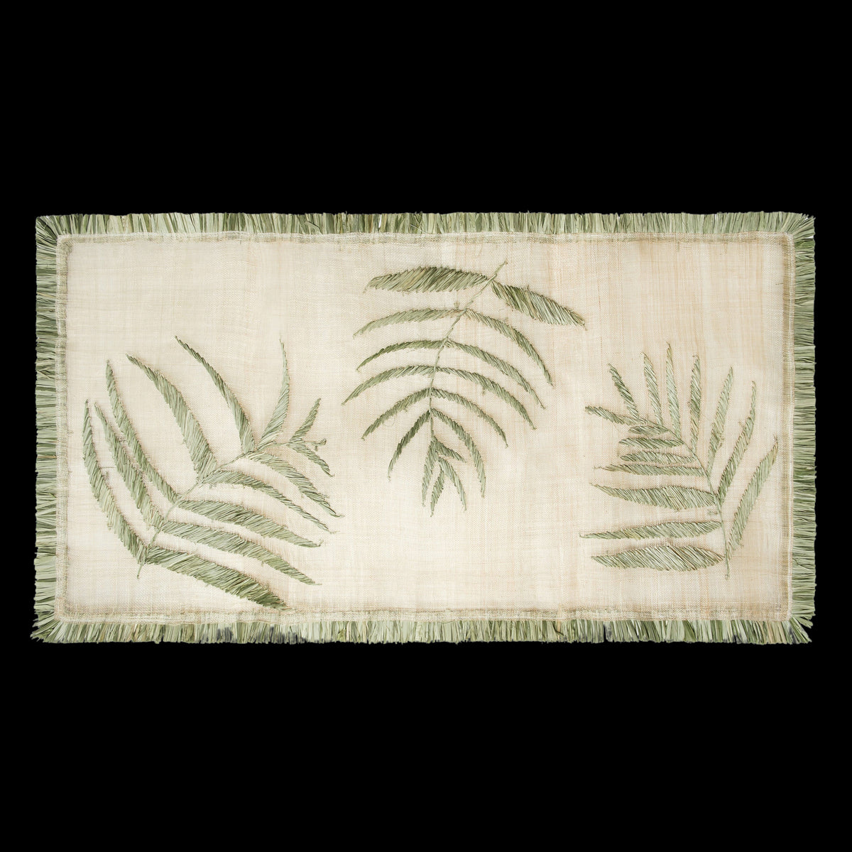 Inspired by her mother’s flair for holiday decorating, Joanna Buchanan has turned her love of travel and knowledge gleaned from twenty years in fashion retail into an eclectic line of tabletop, barware, gifts, and decor. The table runner sets the tone for a meal, and the Straw Frond Table Runner establishes a versatile foundation for the tablescape. The straw frond is created from abaca, the fronds of Filipino palm trees. Handmade and handwoven, this table runner is uniquely beautiful and one of a kind.