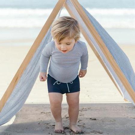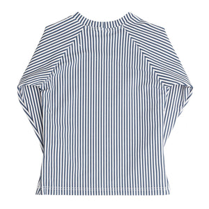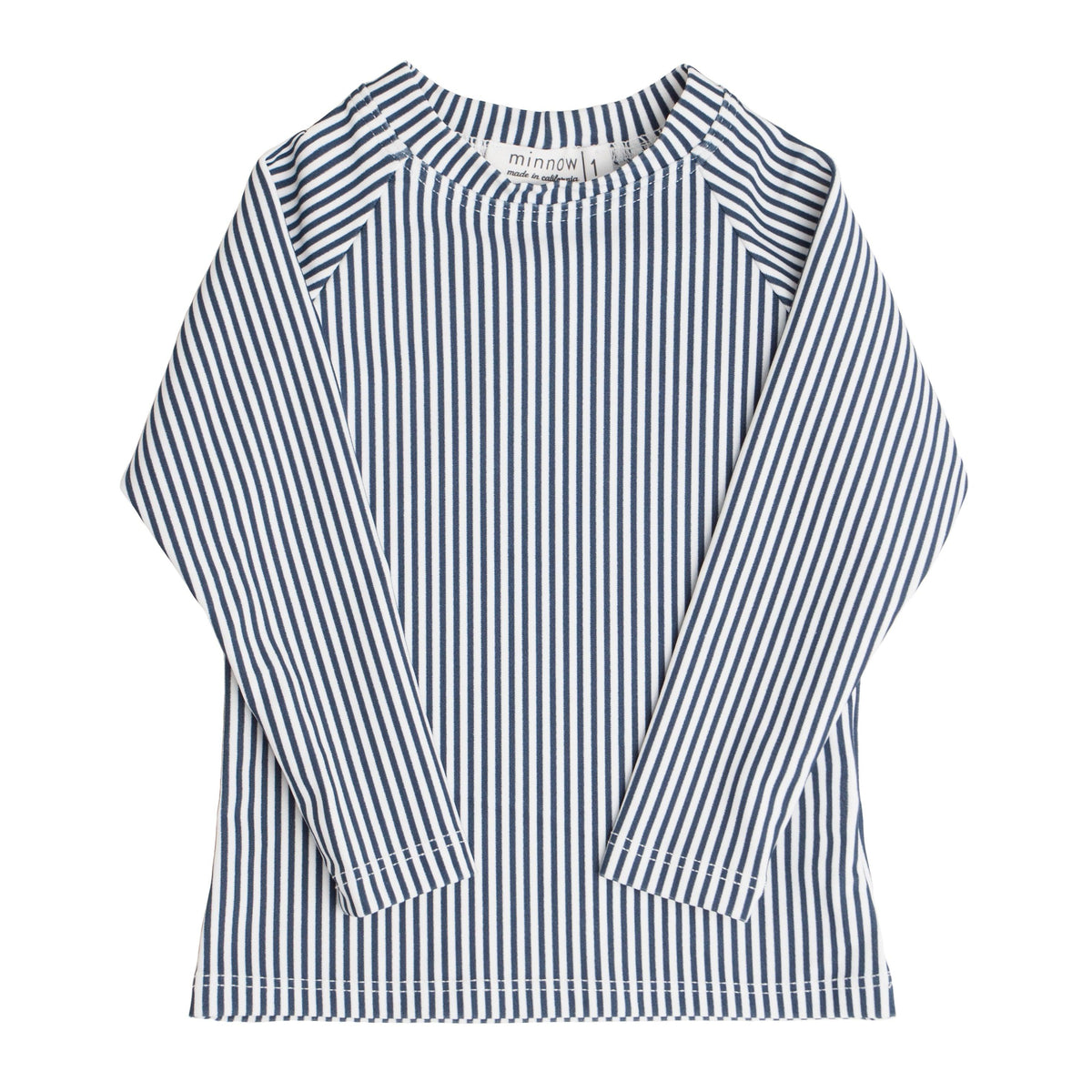 A family favorite for its clean lines and simple details, minnow creates pieces that are playful, polished, and thoughtfully designed for long days, sandy toes, and the wonderment of life on the shore. Complete with a grosgrain ribbon back and ruffle hip detail, the long-sleeved Unisex Stripe Rashguard is crafted in a buttery soft fabric and is designed for movement and breathability. Most importantly, this piece's s UPF 50+ will help to keep your littles sun-safe.