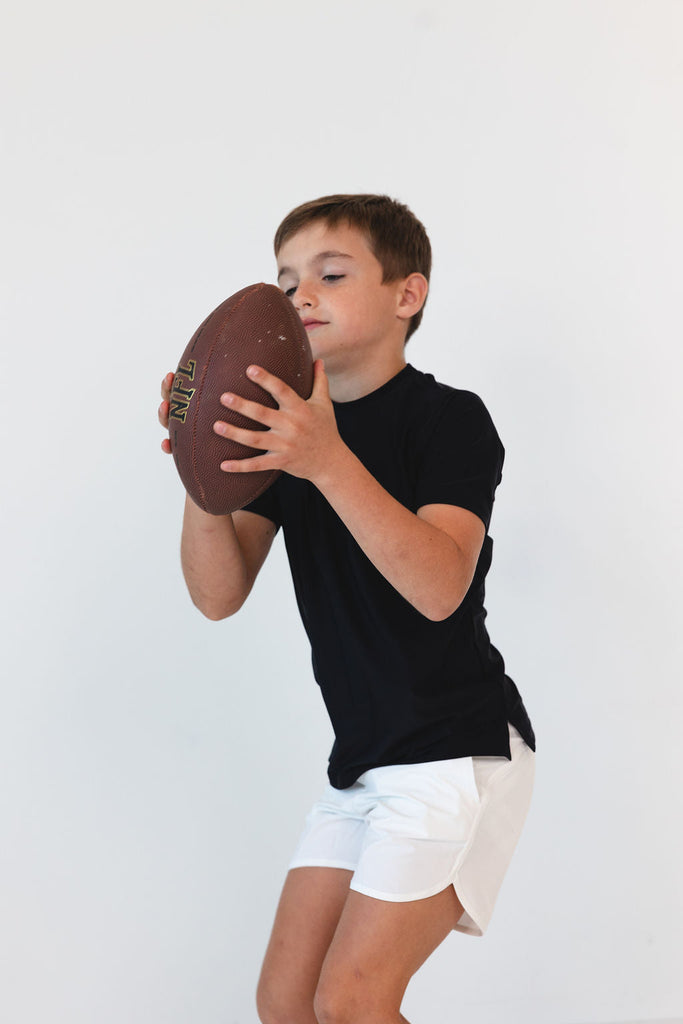 A polished blend of style and sport, Courtside Kids reimagines children’s activewear with performance fabrics, modern tailoring, and a classic athletic sensibility—made for everywhere from the playground to the country club. The Super Shorts in White are the brand’s signature style, designed for active boys who love to move. Crafted from a custom, ultra-soft performance fabric with four-way stretch, these versatile shorts feature a built-in liner with anti-odor protection and practical pockets for collecting treasures, both big and small. A modern above-the-knee cut delivers a sharp, sport-inspired look that pairs effortlessly with any top.