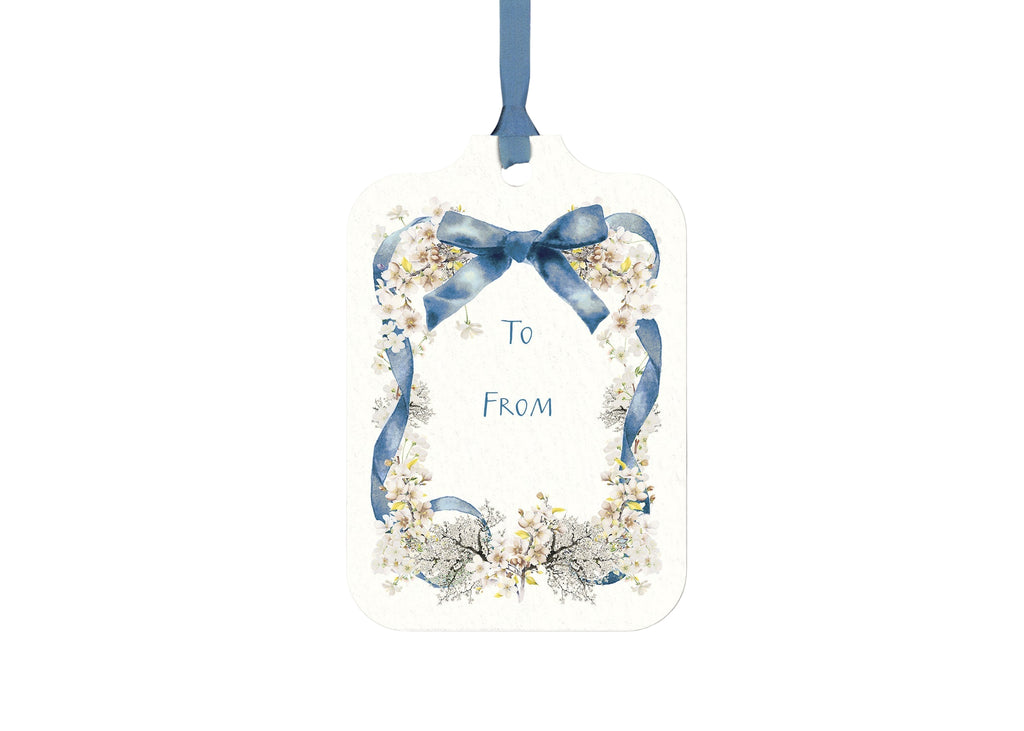 Gift tags on premium cardstock with tight-weave cotton ribbon. Made in the USA.