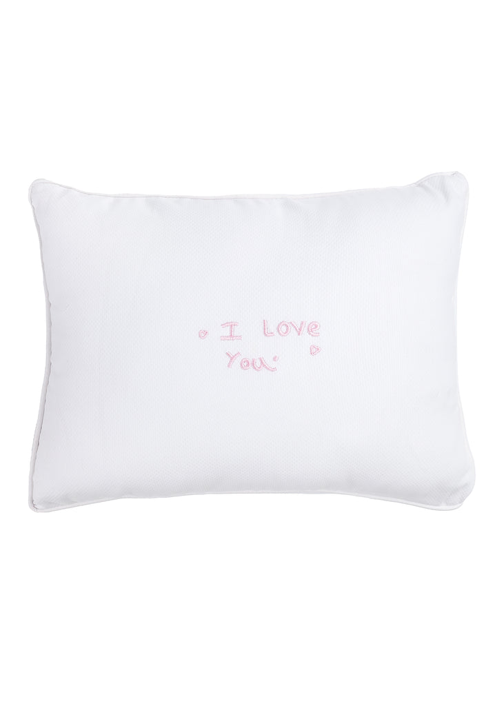 White pillow with piqué piping. Customizable with uploaded handwriting or personal message; sample text shown is for inspiration only.
