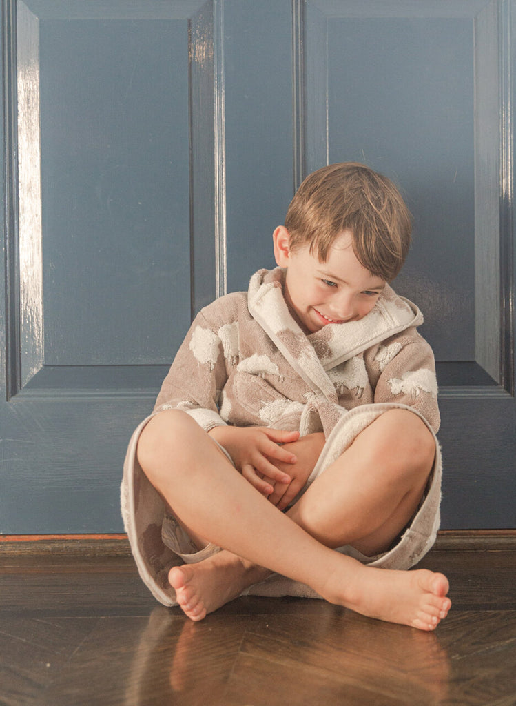 Created to be timeless, sustainable and whimsical, Timo & Violet creates luxury bedding and bath linens for your littlest ones. Looking outward from the very beginning, they develop soft fabrics that are safe for both babies’ skin and the earth, decorating them with artwork by women from around the globe. The Sweet Sheep Bathrobe is designed to make transitions—from tub to bedtime, or from play to rest—a little softer. Woven from plush organic cotton terry and finished in the calming White Sand hue, this robe wraps little ones in cloudlike comfort. Thoughtfully made and beautifully neutral, it’s as soothing as counting sheep before sleep.