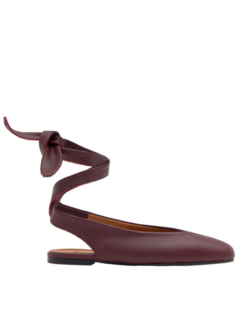 Founded in 1927, Castañer has elevated the espadrille into a sophisticated symbol of timeless design. With a commitment to craftsmanship, tradition, and natural materials, the brand continues to blend heritage with innovation, earning global recognition while staying true to its authentic roots. The Sybil in Bordeaux channels understated femininity with a refined slingback ballerina silhouette. Designed with tonal ribbon ties, a padded insole, and a lightweight sole, it balances timeless elegance with modern ease.