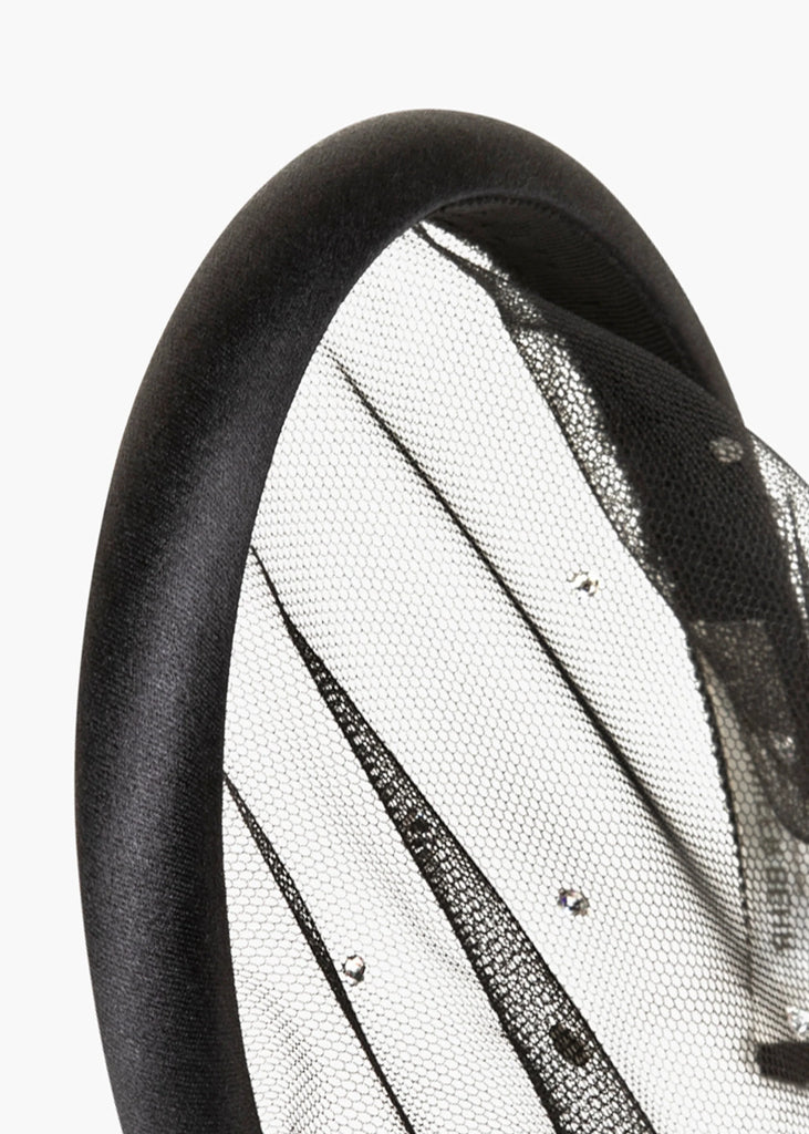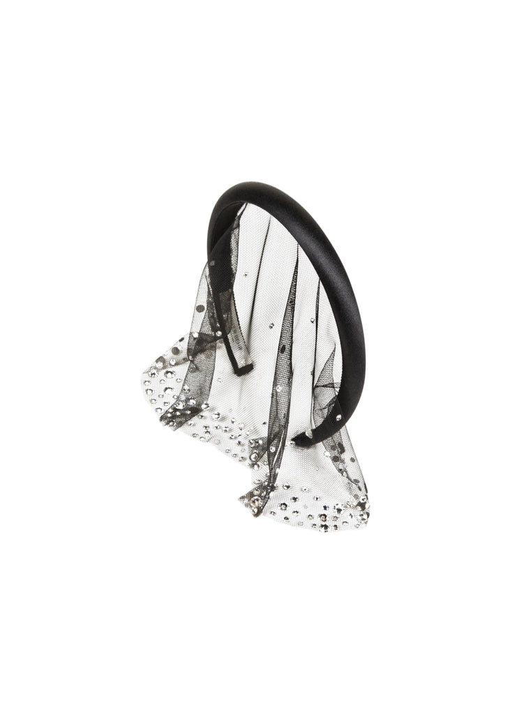 Silk-satin wrapped headband. Soft Italian tulle hand-embroidered with fine Austrian crystals. Handmade in New York City.