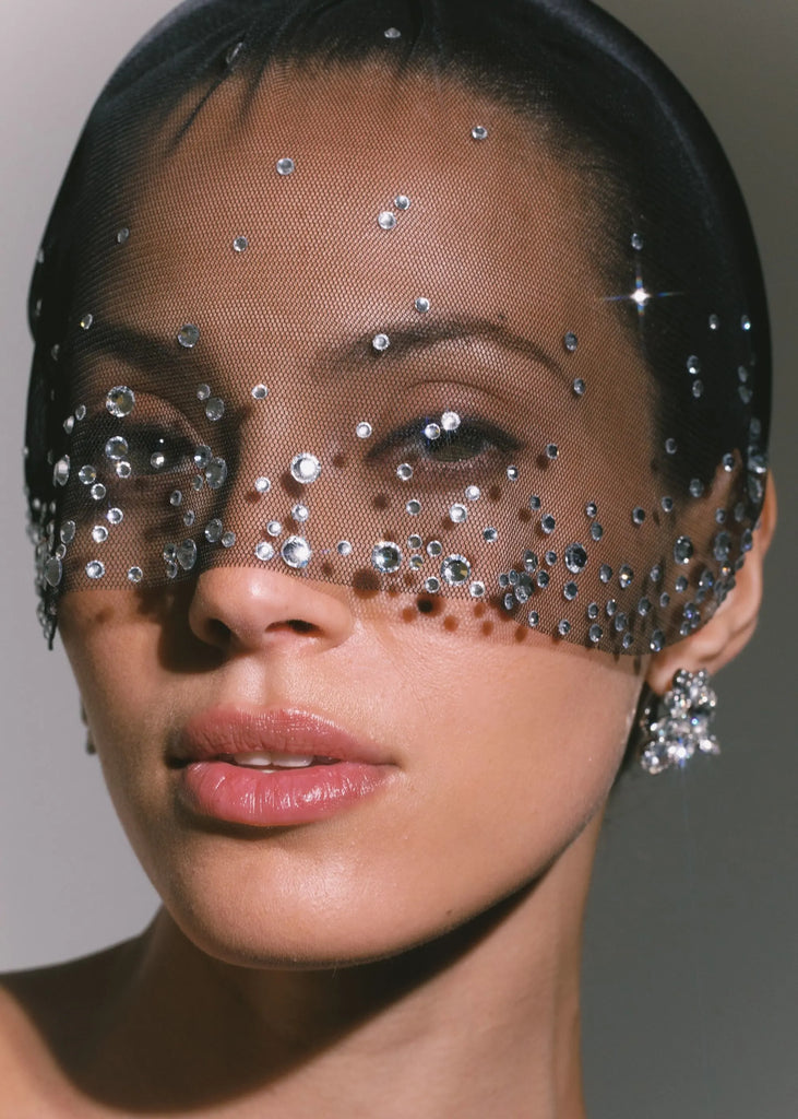 “Everything has a story to tell,” says Jennifer Behr, the founder of her namesake luxury hair accessory brand that has blossomed into one of New York City’s foremost ateliers for jewelry, as well as bridal. In every crystal, pearl, and ribbon, you’ll find the utmost quality and a sense of romance, as each piece reveals a modern interpretation of centuries-old regalia. The Sydney Voilette in Black Crystal captures the drama of evening glamour with an ethereal, diamond-dusted effect. Handcrafted in New York, its soft Italian tulle is embroidered with Austrian crystals that appear to fall like snowflakes, while a silk-satin–wrapped headband provides a luxurious finishing touch.