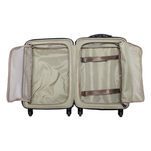 Founded in 1948, T. Anthony is an iconic American luxury luggage and leather goods brand, renowned for its exceptional craftsmanship and timeless design. Committed to ethical production, the brand blends classic elegance with durability, offering versatile pieces that are made to last and be passed down. Designed with 4 wheels and a retractable handle for effortless carrying, the International Carry On is ideal for international travel or for short trips. The well organized interior has 2 compartments that zip closed. One compartment has a transparent mesh closure and the other a solid nylon closure. There are 2 small zipper pockets on the solid nylon closure. Exterior zipper pocket for tablet , passport wallet, or other small items. Made with exceptional materials, straightforward design, and easy functionality in mind.
